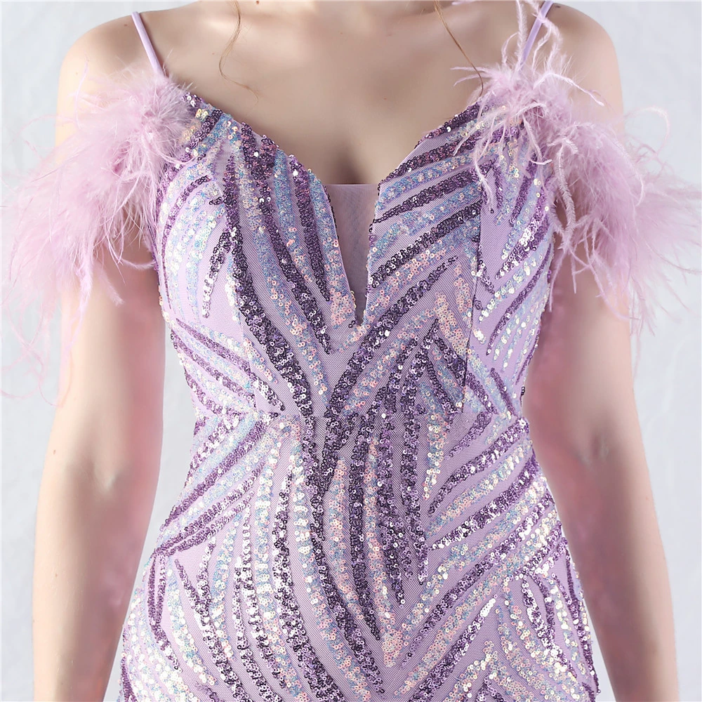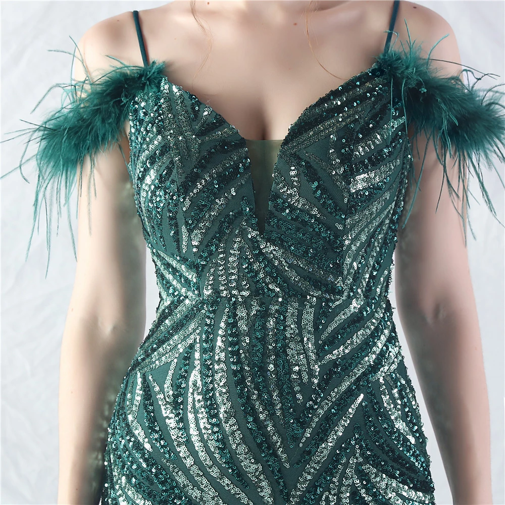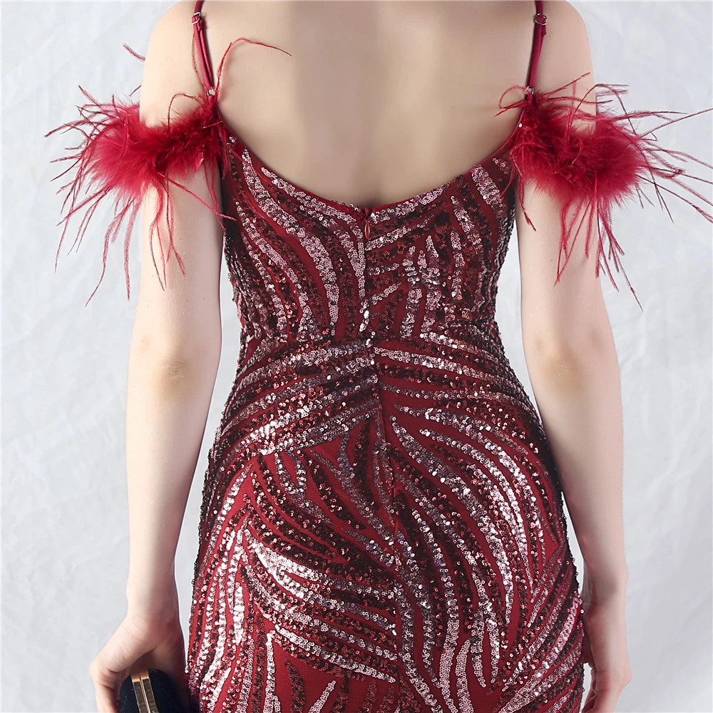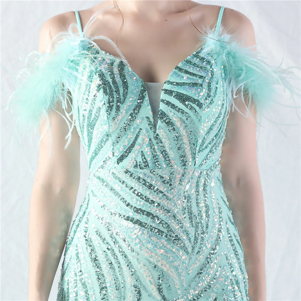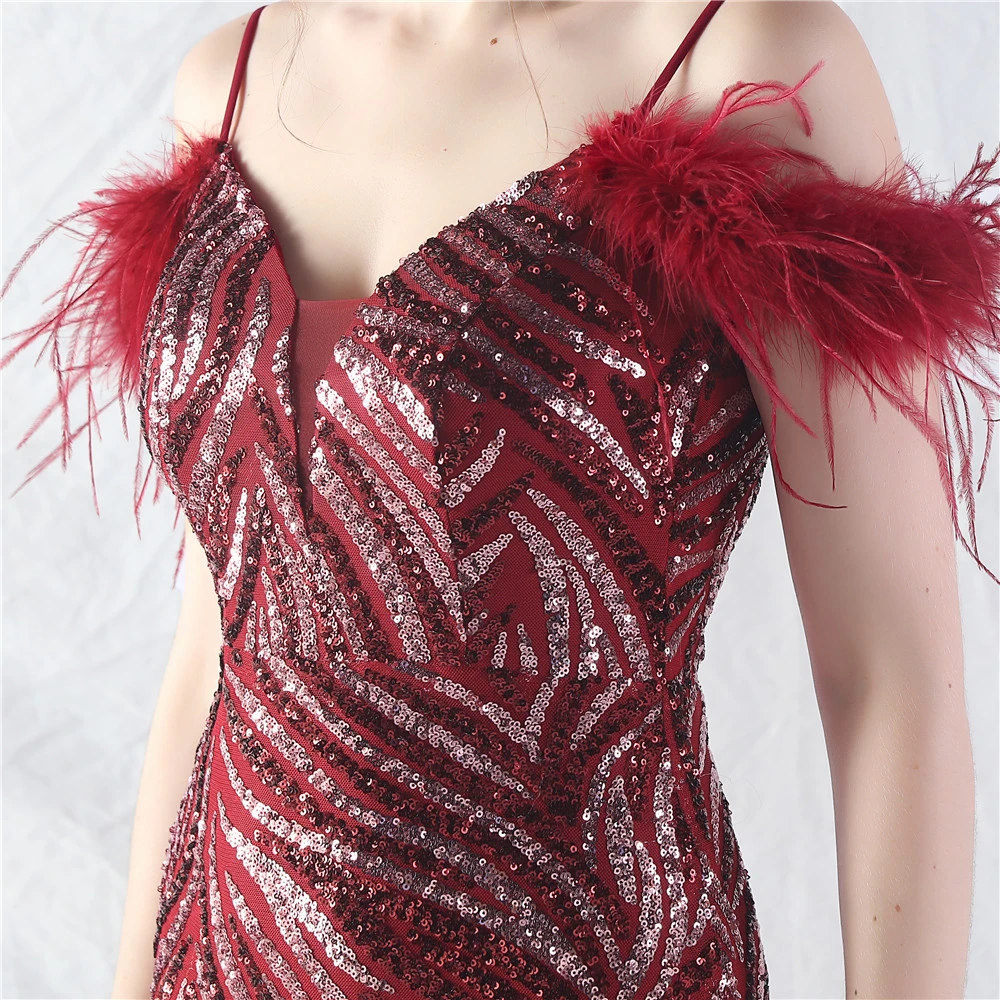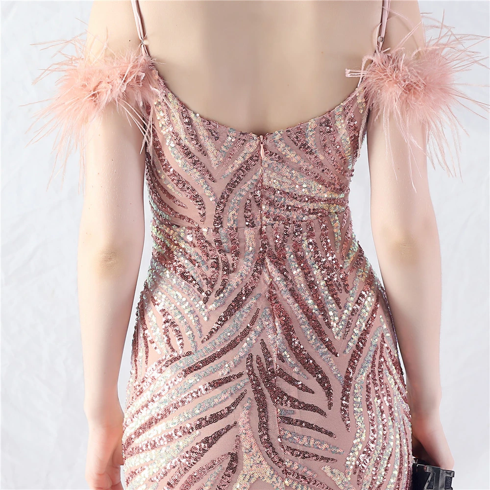 Crafted Ostrich Feather Stacked Sequins Splicing Mesh Gauze High-End Evening Dress Clothes