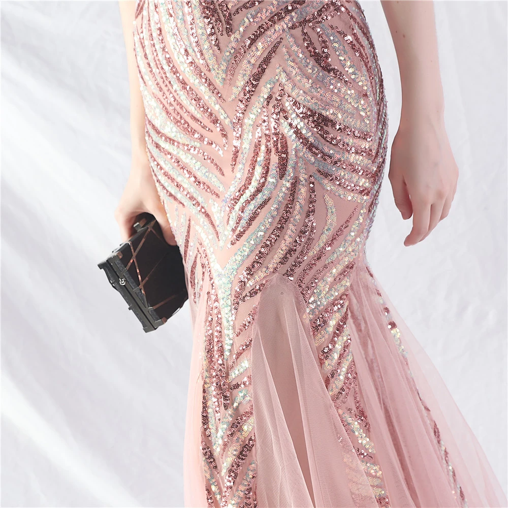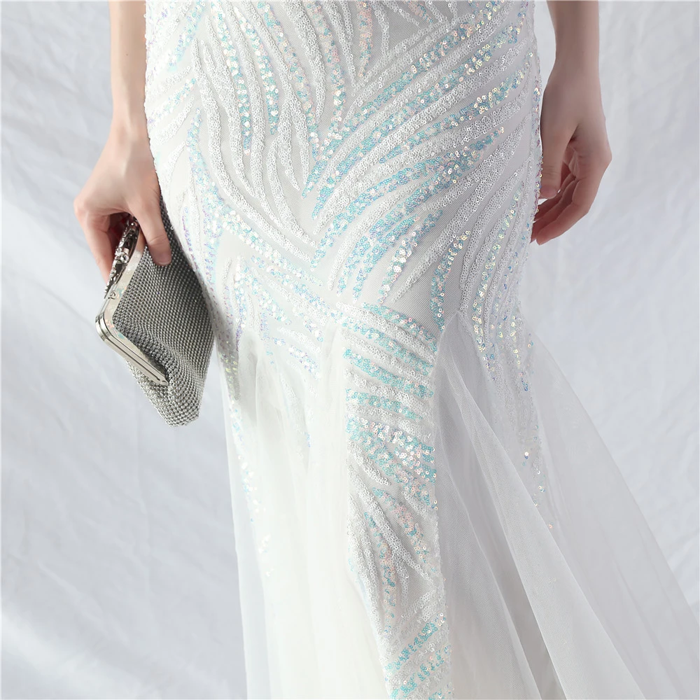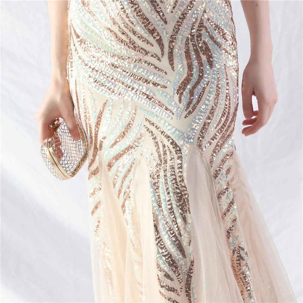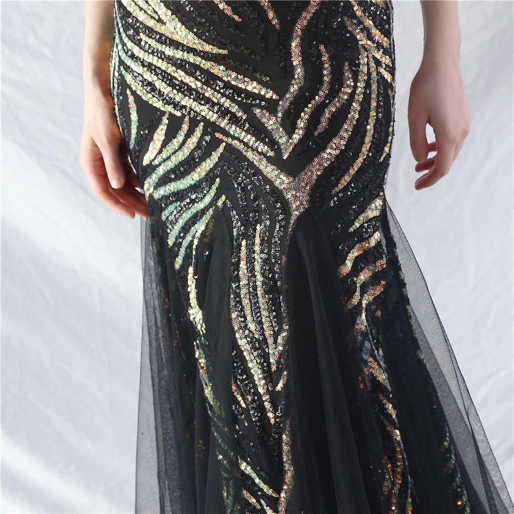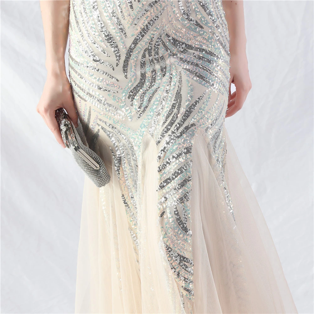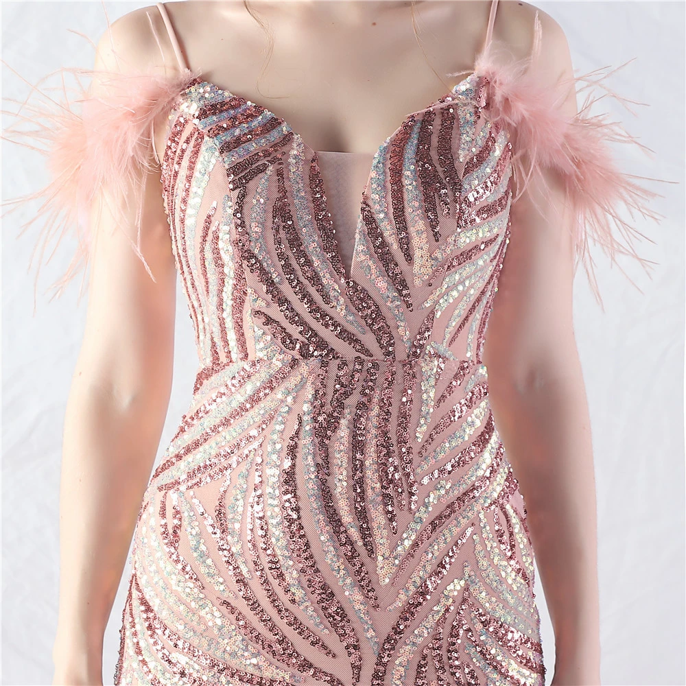 Crafted Ostrich Feather Stacked Sequins Splicing Mesh Gauze High-End Evening Dress Clothes