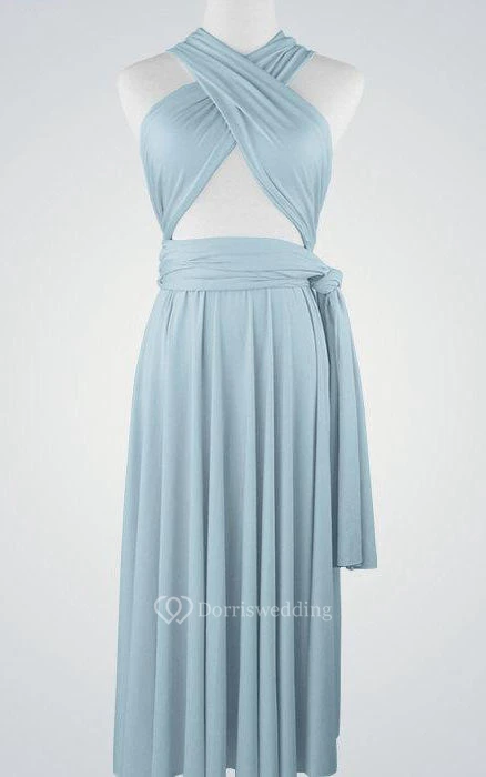 Criss-cross Bandage Top Pleated Chiffon Knee Length Dress With Sash