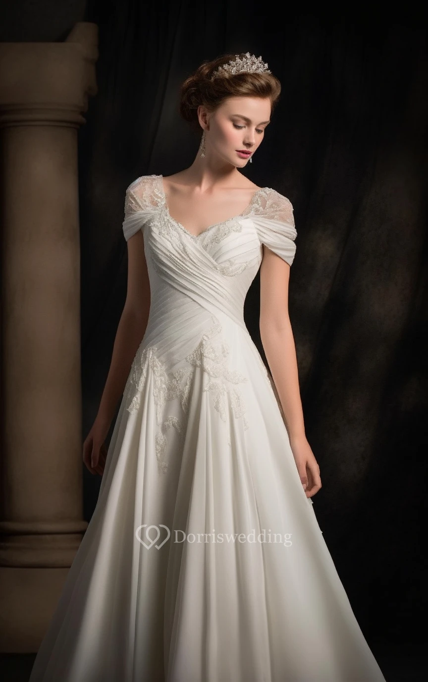 Criss-cross Cap Chiffon Empire Applique A-line Wedding Dress