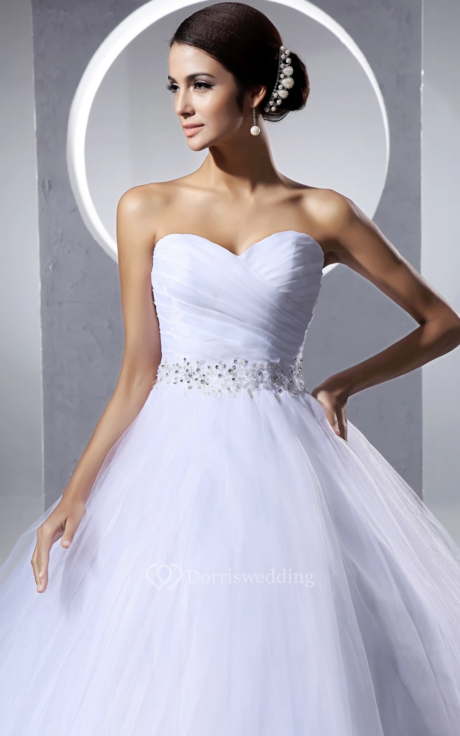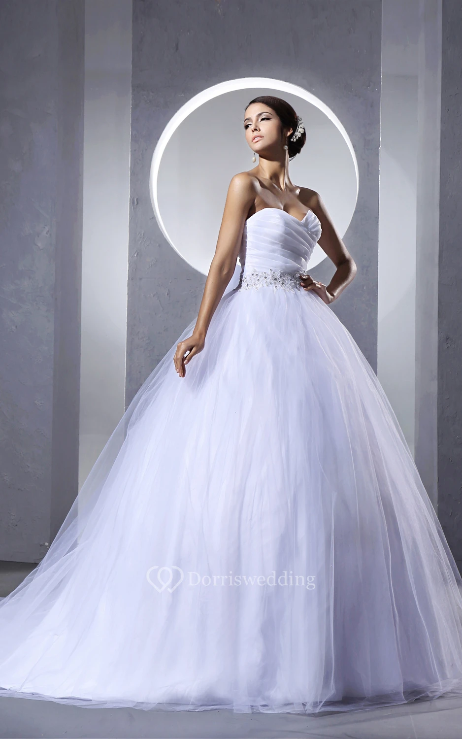Criss-Cross Ruching Beaded Sash A-Line Ball Gown With Pleatings