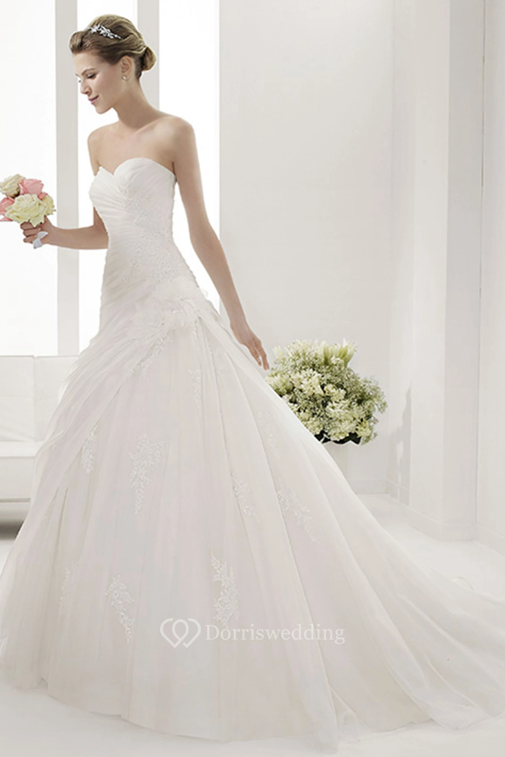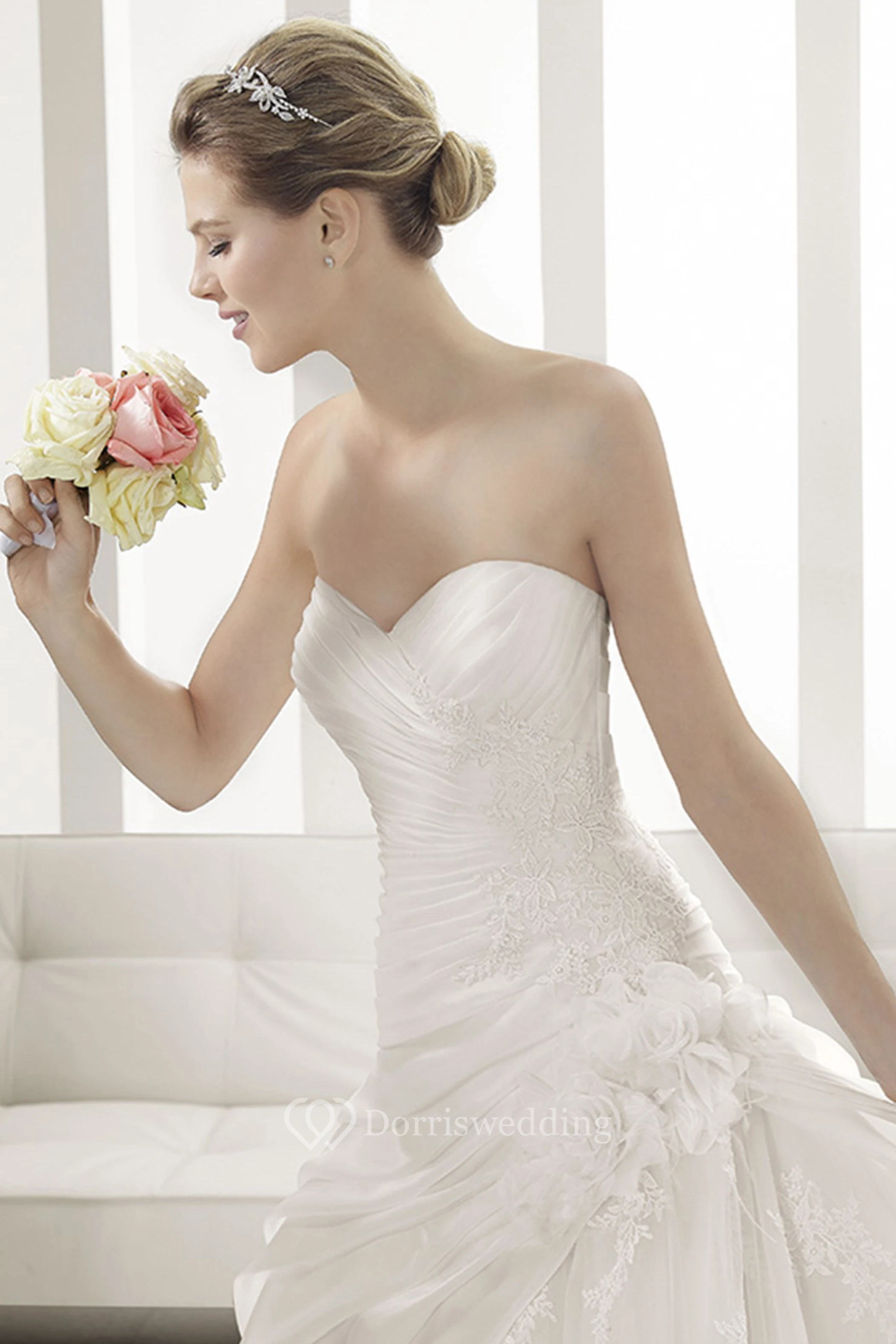 Criss-cross Sweetheart Mermaid Bridal Gown With Appliques And Flower
