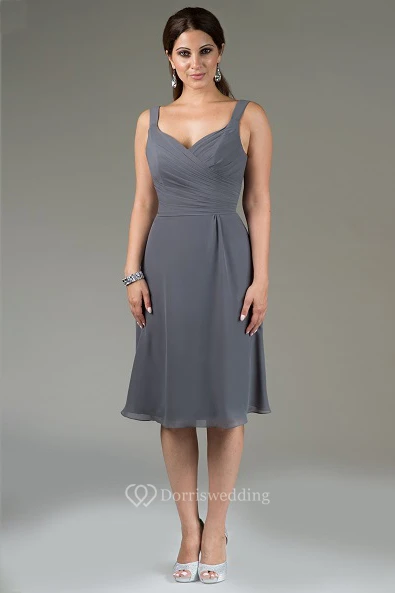 Criss Cross Top Knee Length Chiffon Bridesmaid Dress With Double Straps
