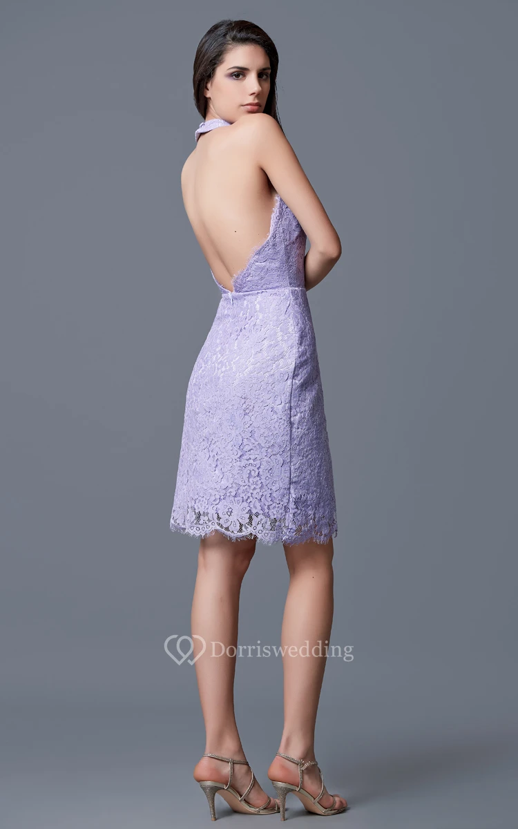 Criss-crossed Halter Neck Form-fitted Short Lace Dress