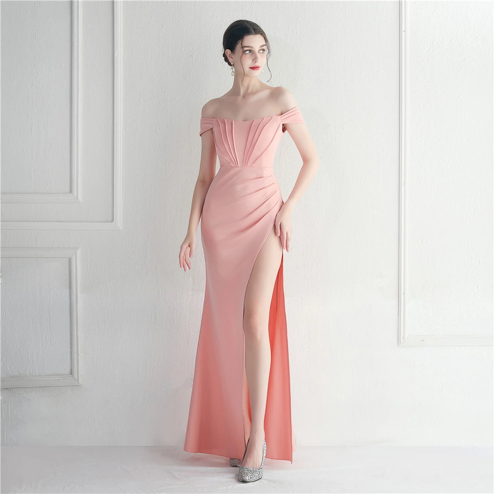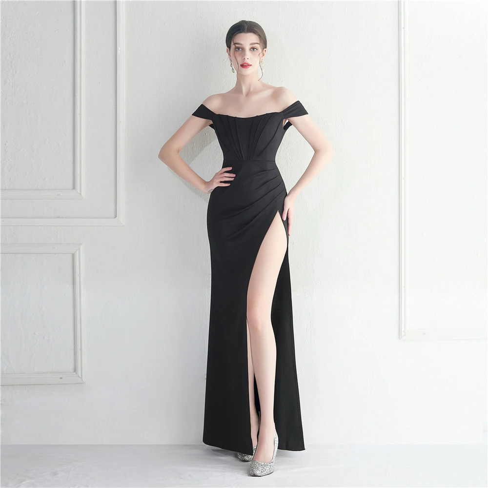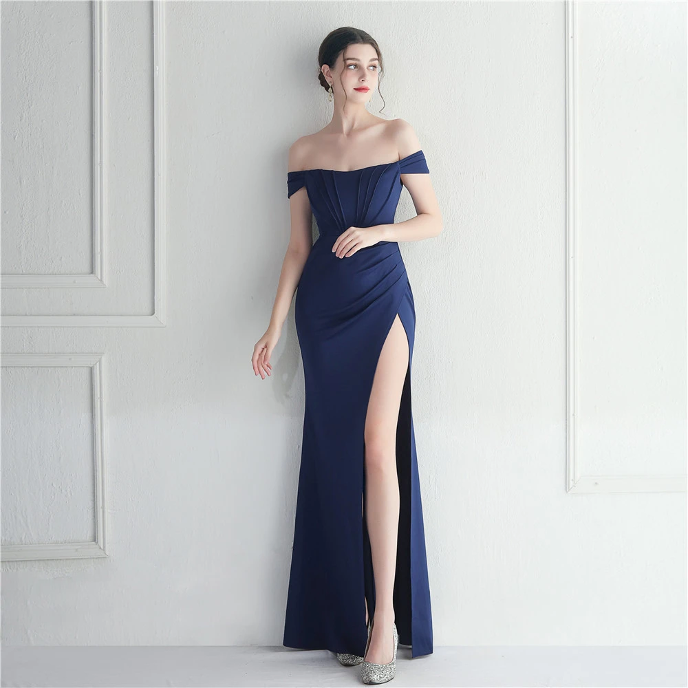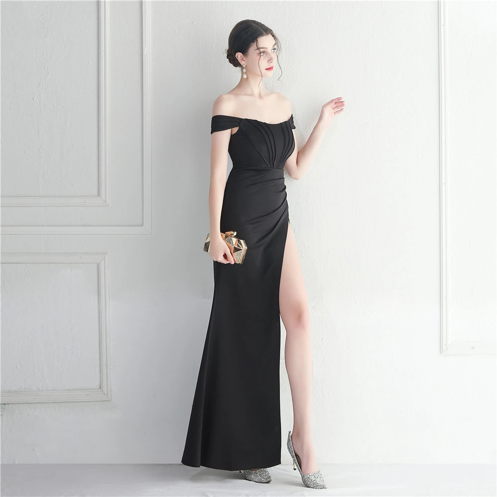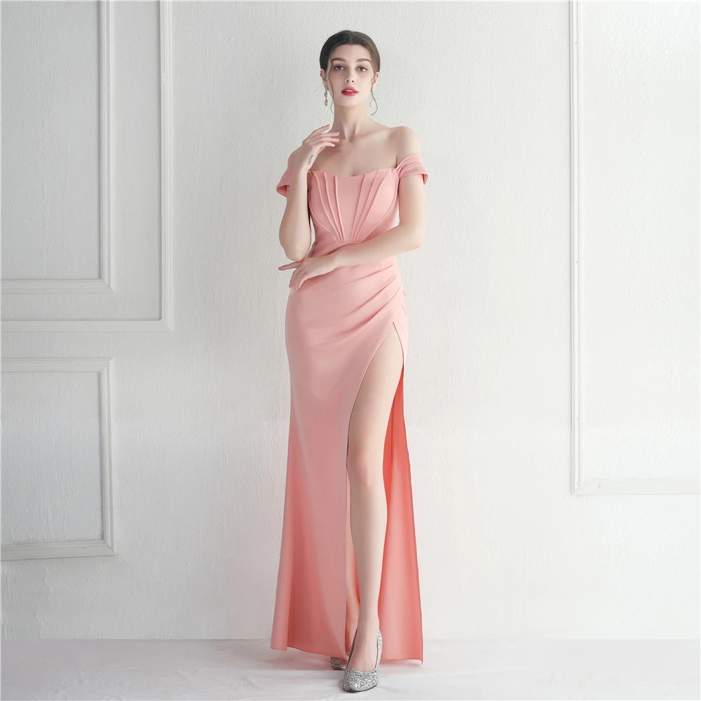 Cross-Border Supply Off-Shoulder One-Shoulder Neckline Slit Sexy Nightclub Dress Wedding Dinner