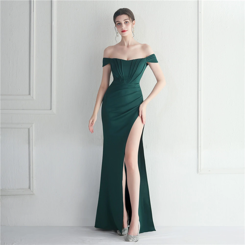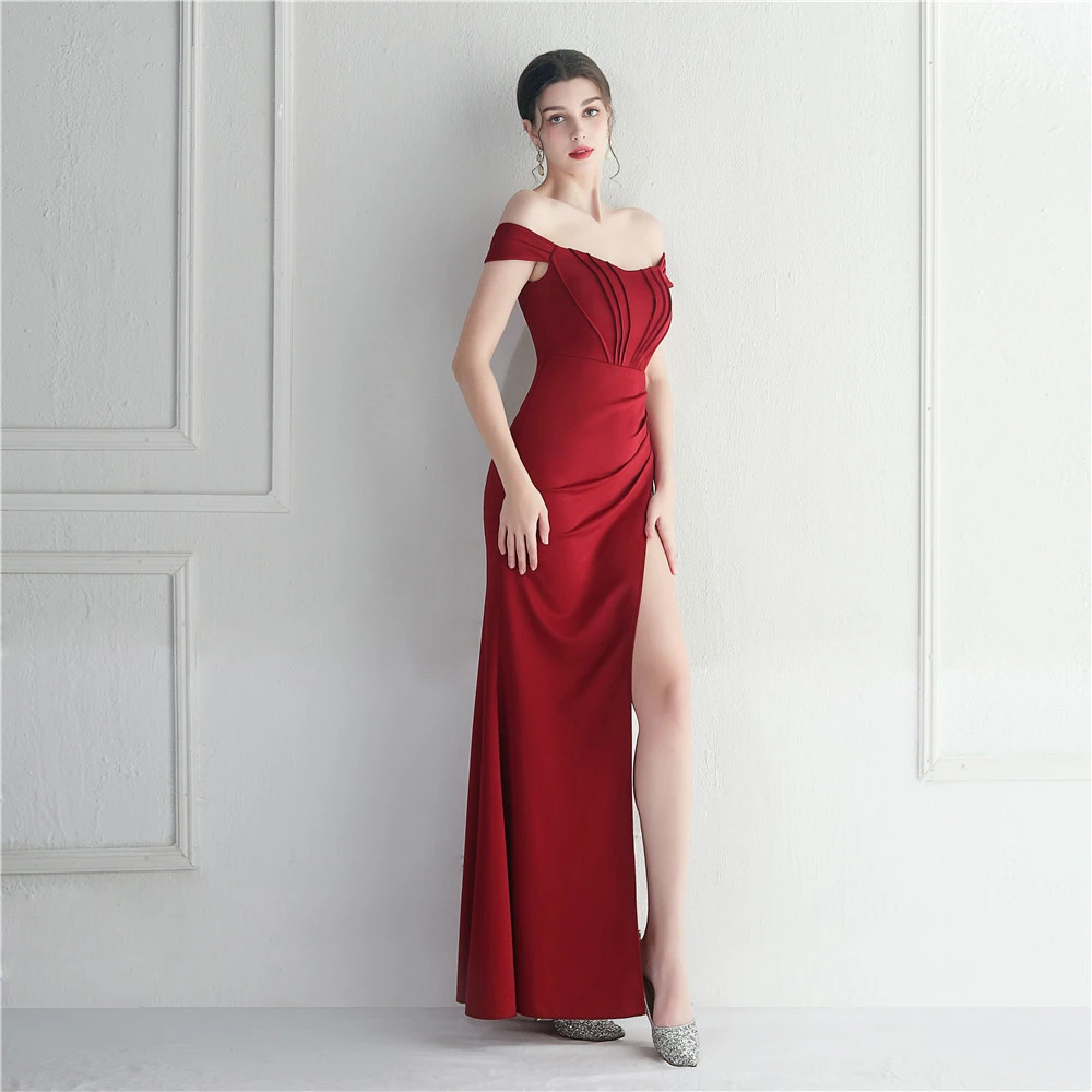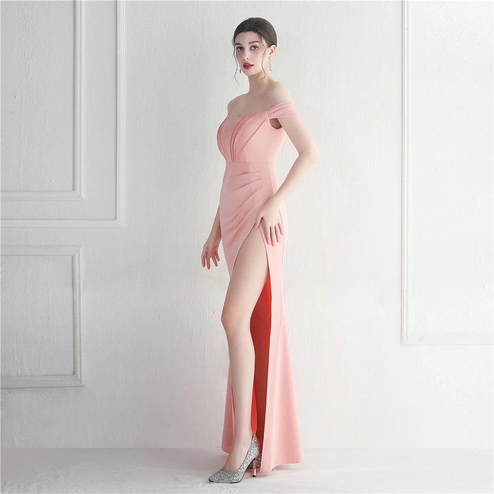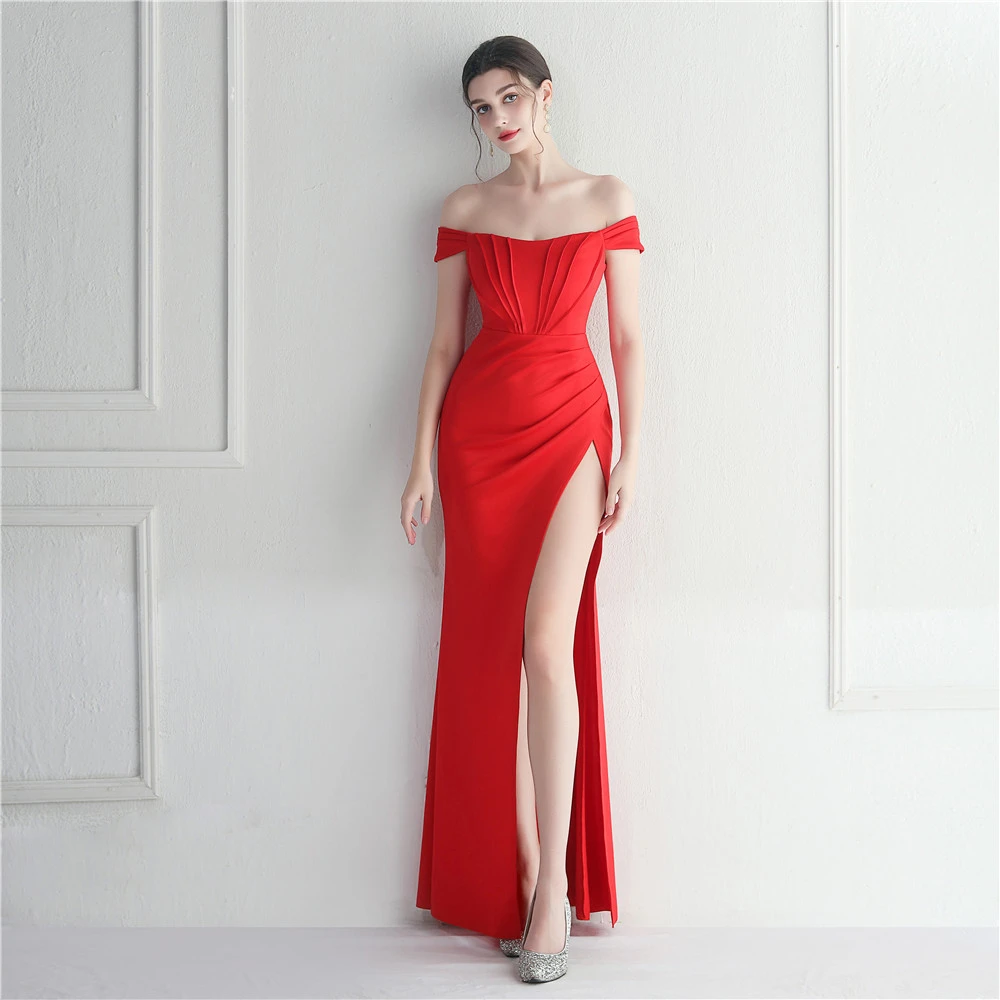 Cross-Border Supply Off-Shoulder One-Shoulder Neckline Slit Sexy Nightclub Dress Wedding Dinner