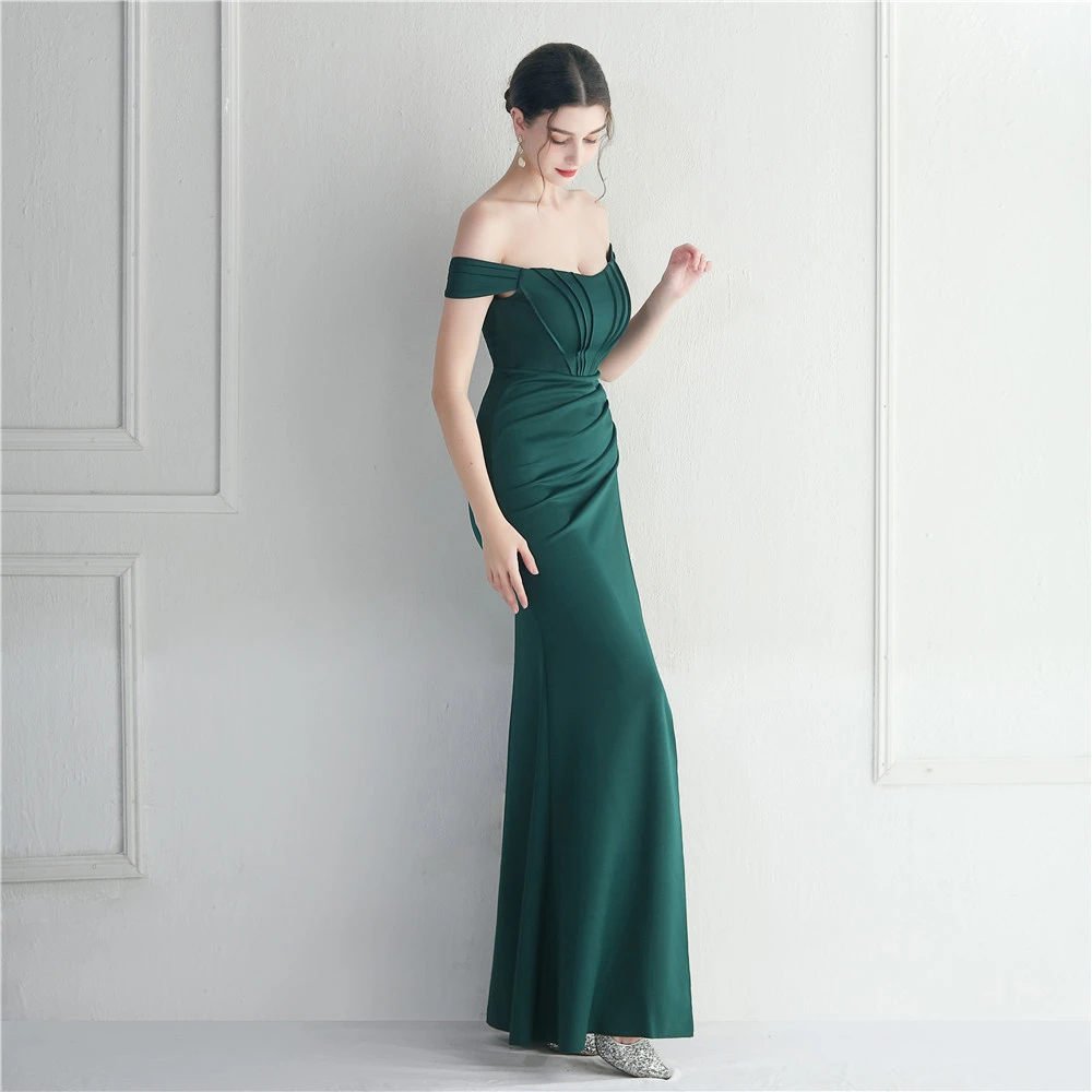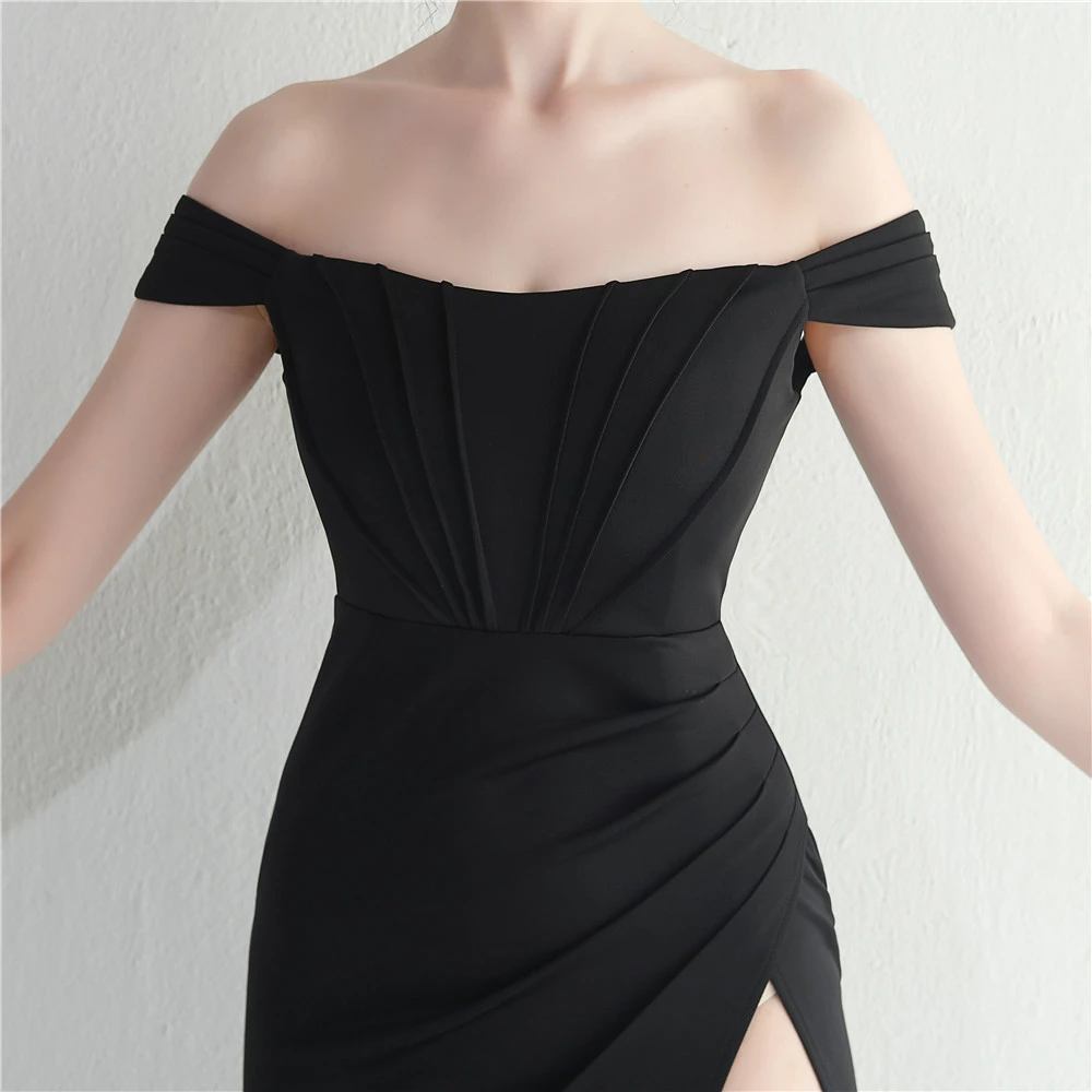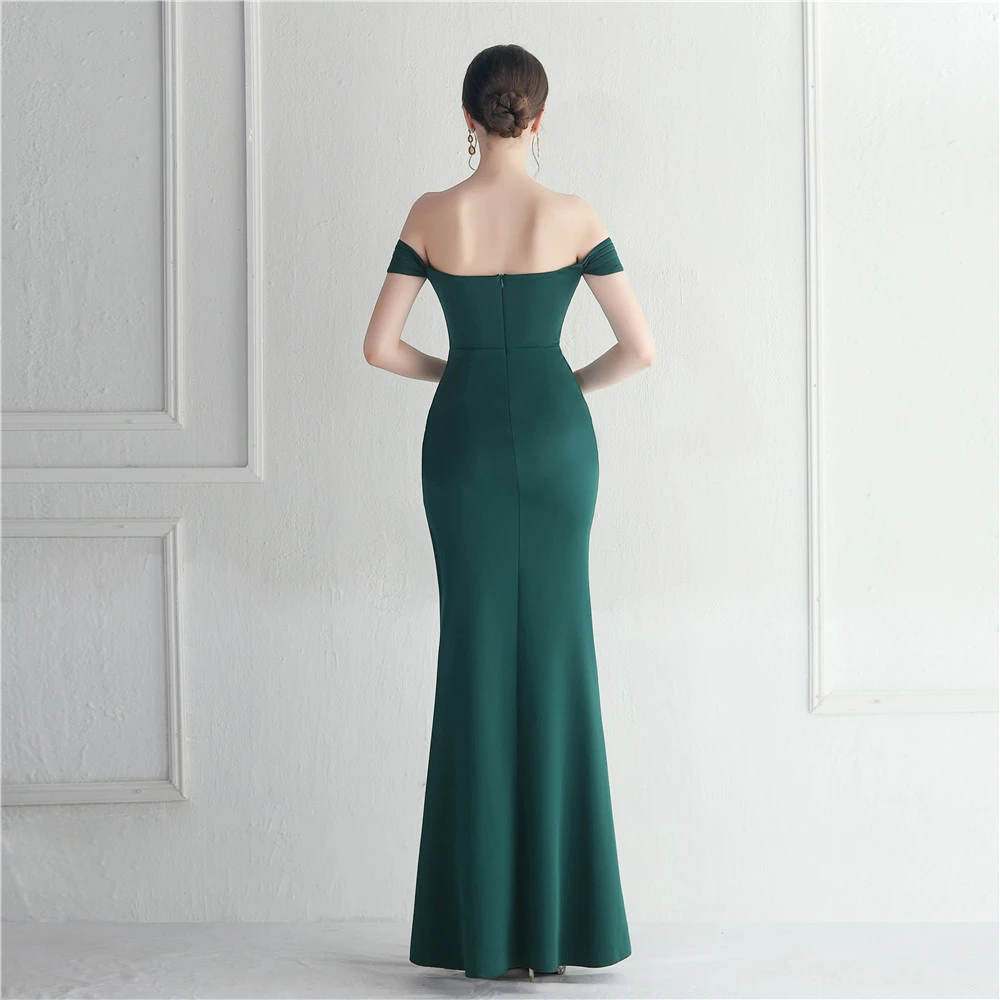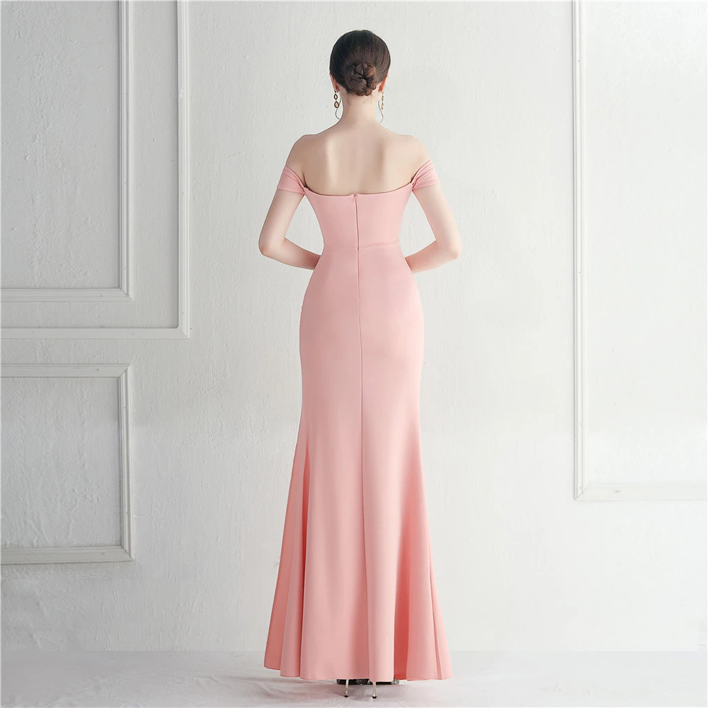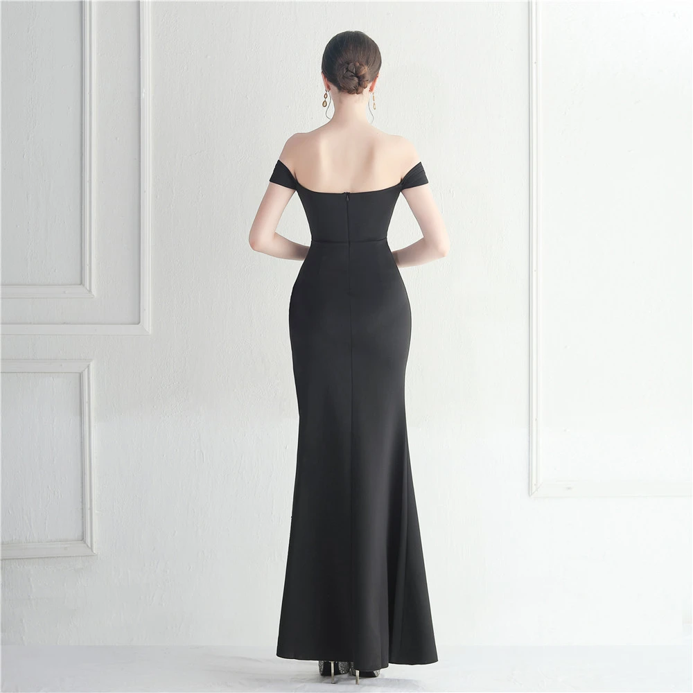 Cross-Border Supply Off-Shoulder One-Shoulder Neckline Slit Sexy Nightclub Dress Wedding Dinner