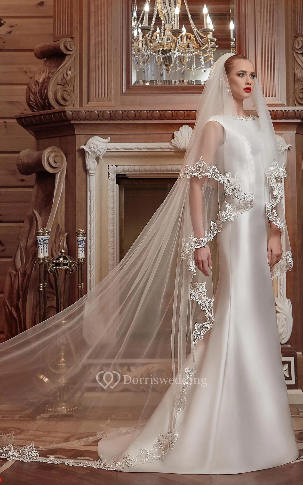 • Hemline/Train: Floor-length, Sweep/Brush Train