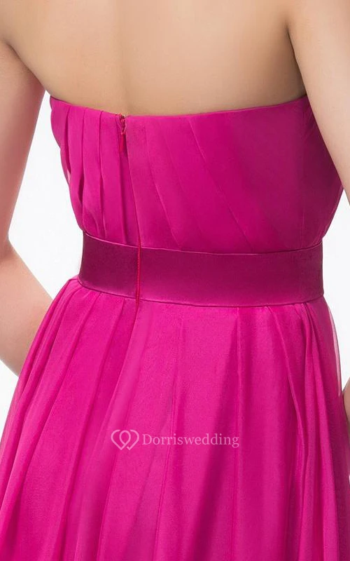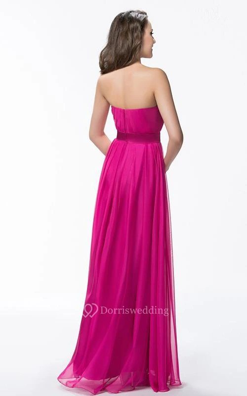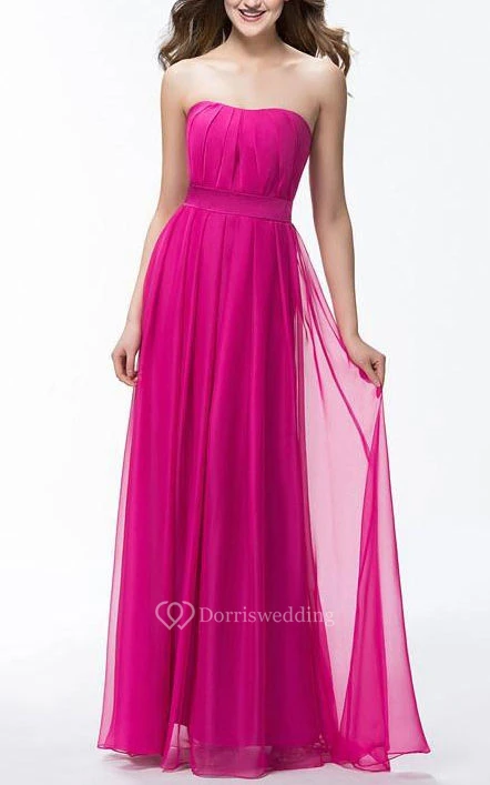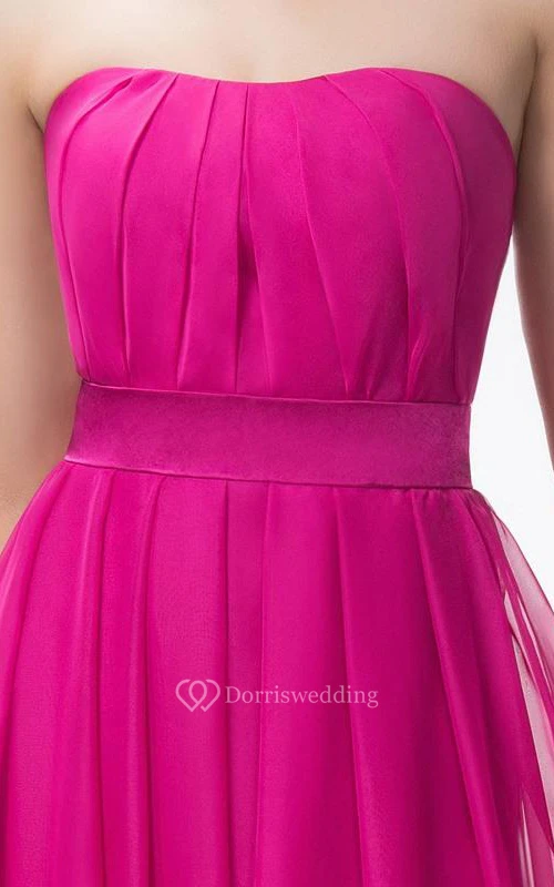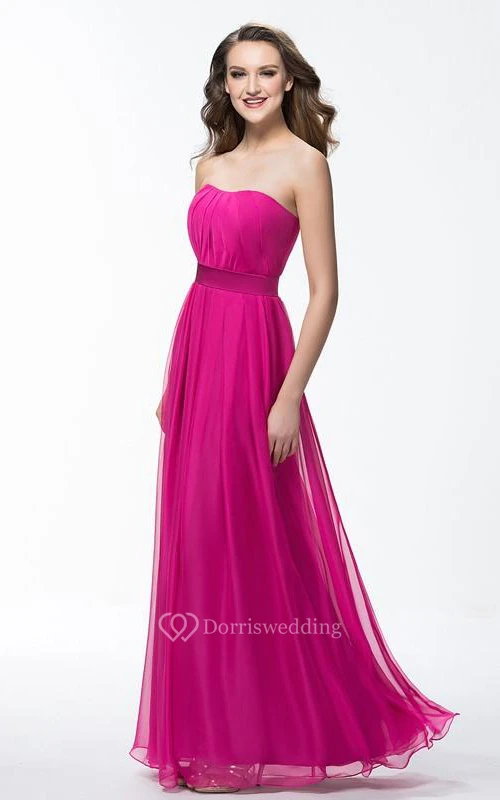 Cute Strapless A-Line Floor Length Ruffles Sash Prom Dress