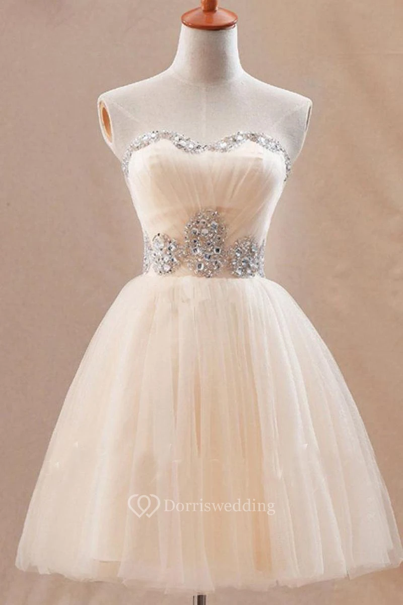 Cute Sweetheary SHort Tulle Homecoming Dress With Crystals