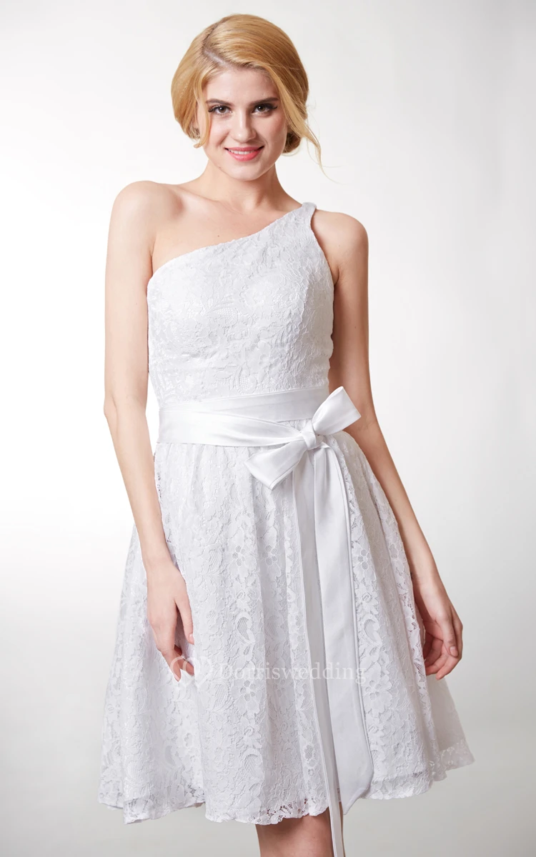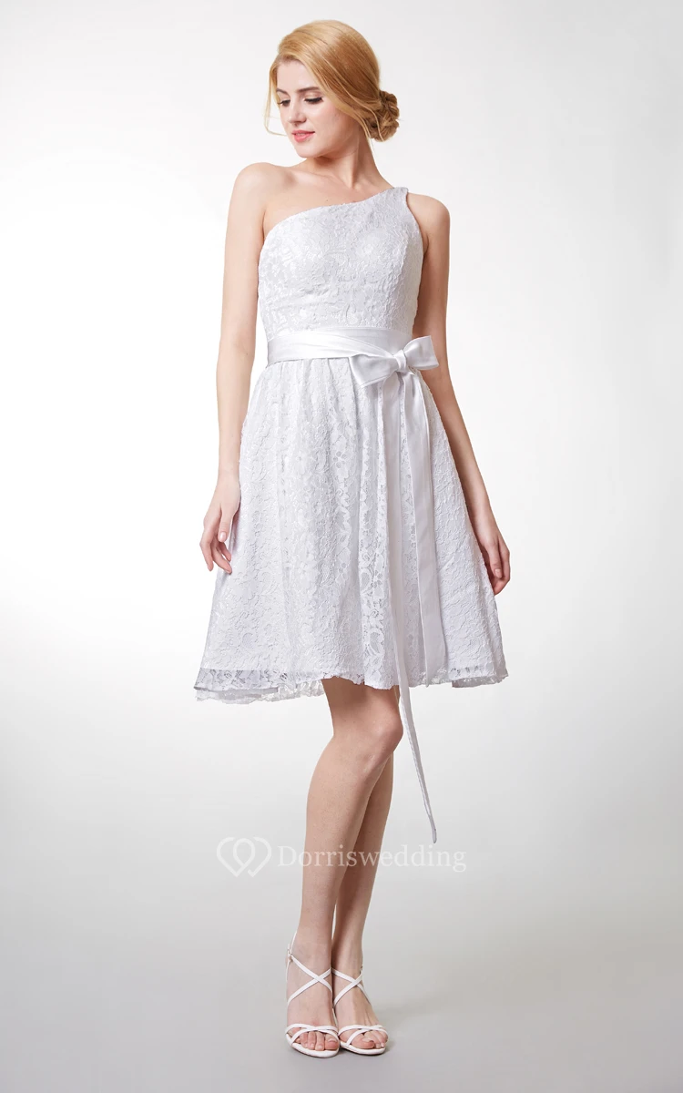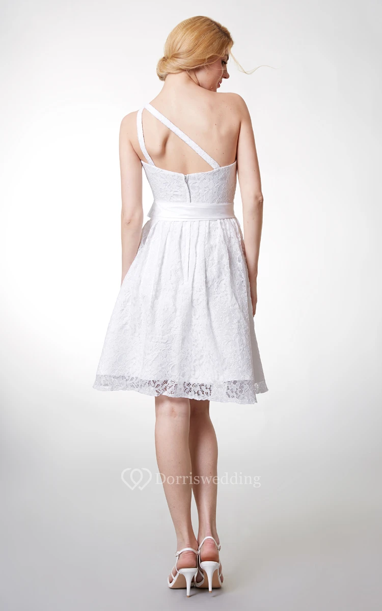 Dainty Asymmetrical Belted A-line Floral Lace Dress With String Back Strap