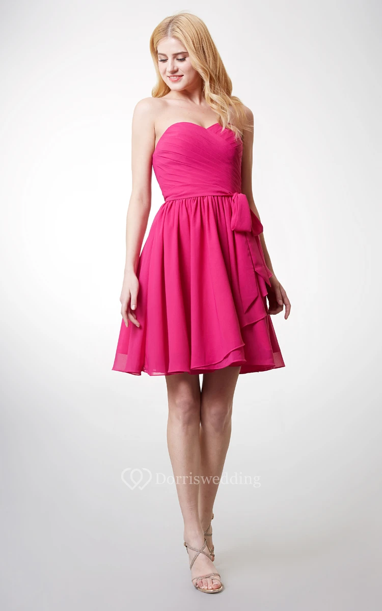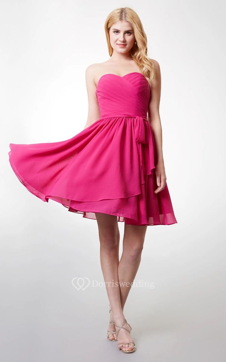Dashing Strapless Sweetheart Top-Pleated Layered Chiffon Dress With Belt