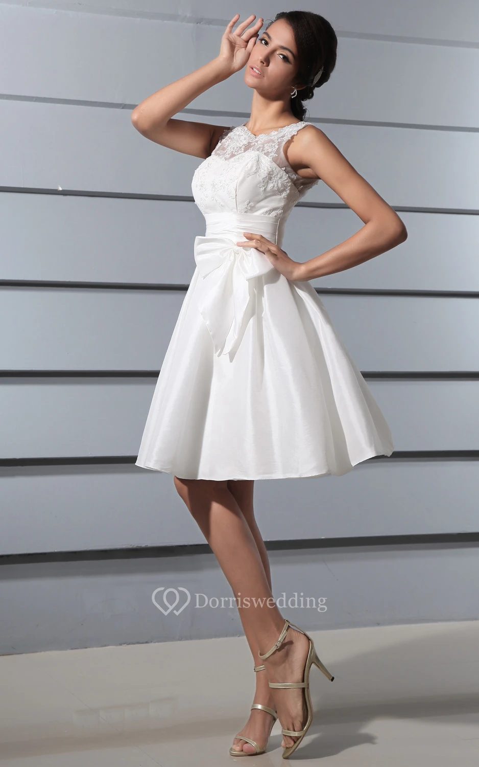 Such a beautiful and well-made dress for a cheap price! It looks far more expensive than it is. I picked it for my daughter's simple wedding next month. She doesn't like dresses so I had to get it for her. guess what? She liked it because of the short skirt and sleeveless pattern. She looks good in this dress and it is perfect for her garden wedding. She will be wearing it with heels.