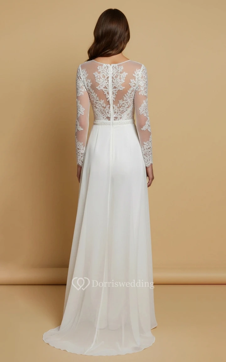 Deep V Lace Sheer Long Sleeve Wide Leg Wedding Jumpsuit