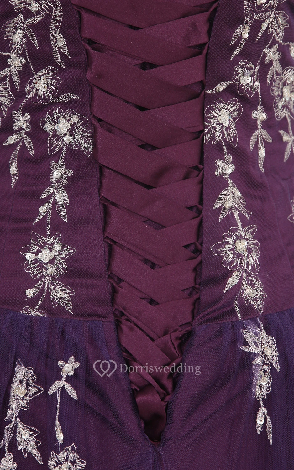 • Hemline/Train: Floor-length, Sweep/Brush Train