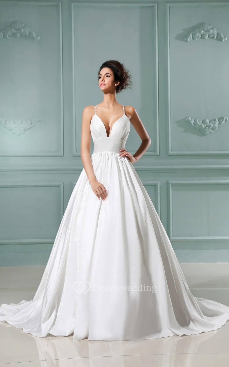 • Hemline/Train: Floor-length, Chapel Train