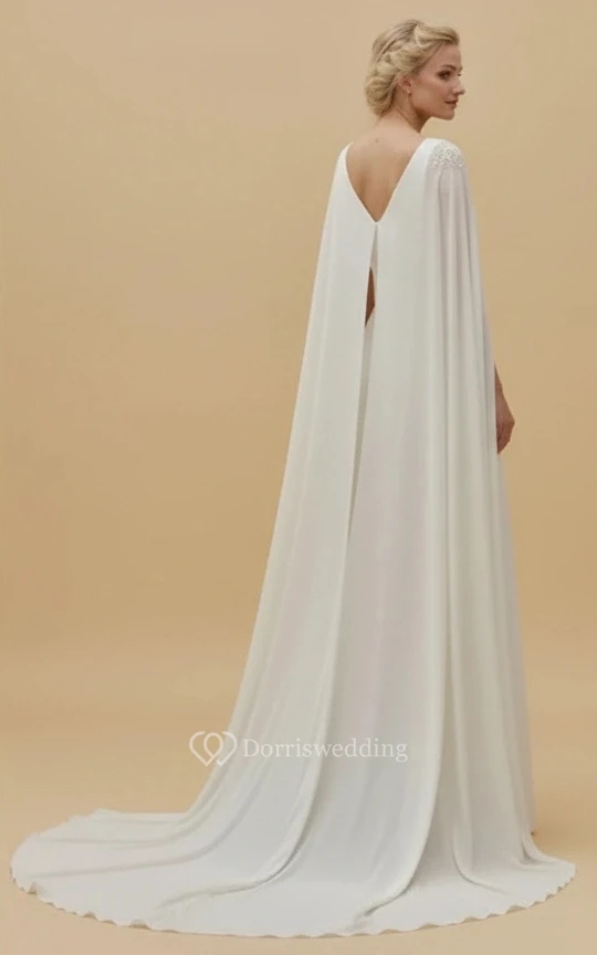 Deep V Neck Long Sleeve Tulle Sleeve Wide Leg Wedding Jumpsuit