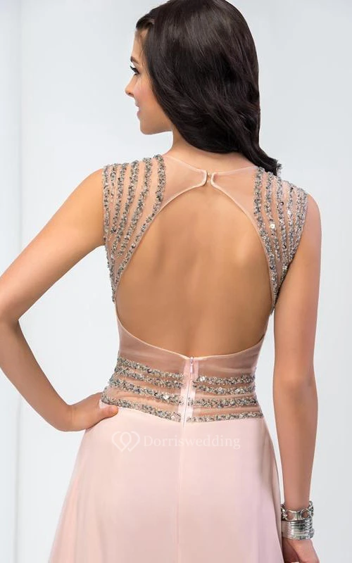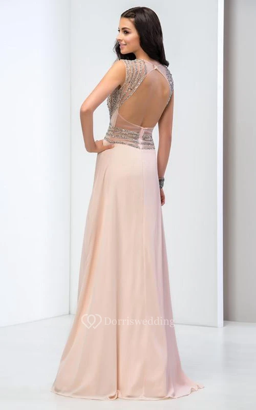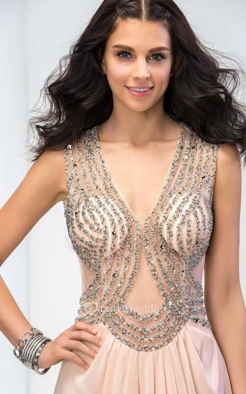 Deep-V Neck Open Back Sequins Long Prom Dress