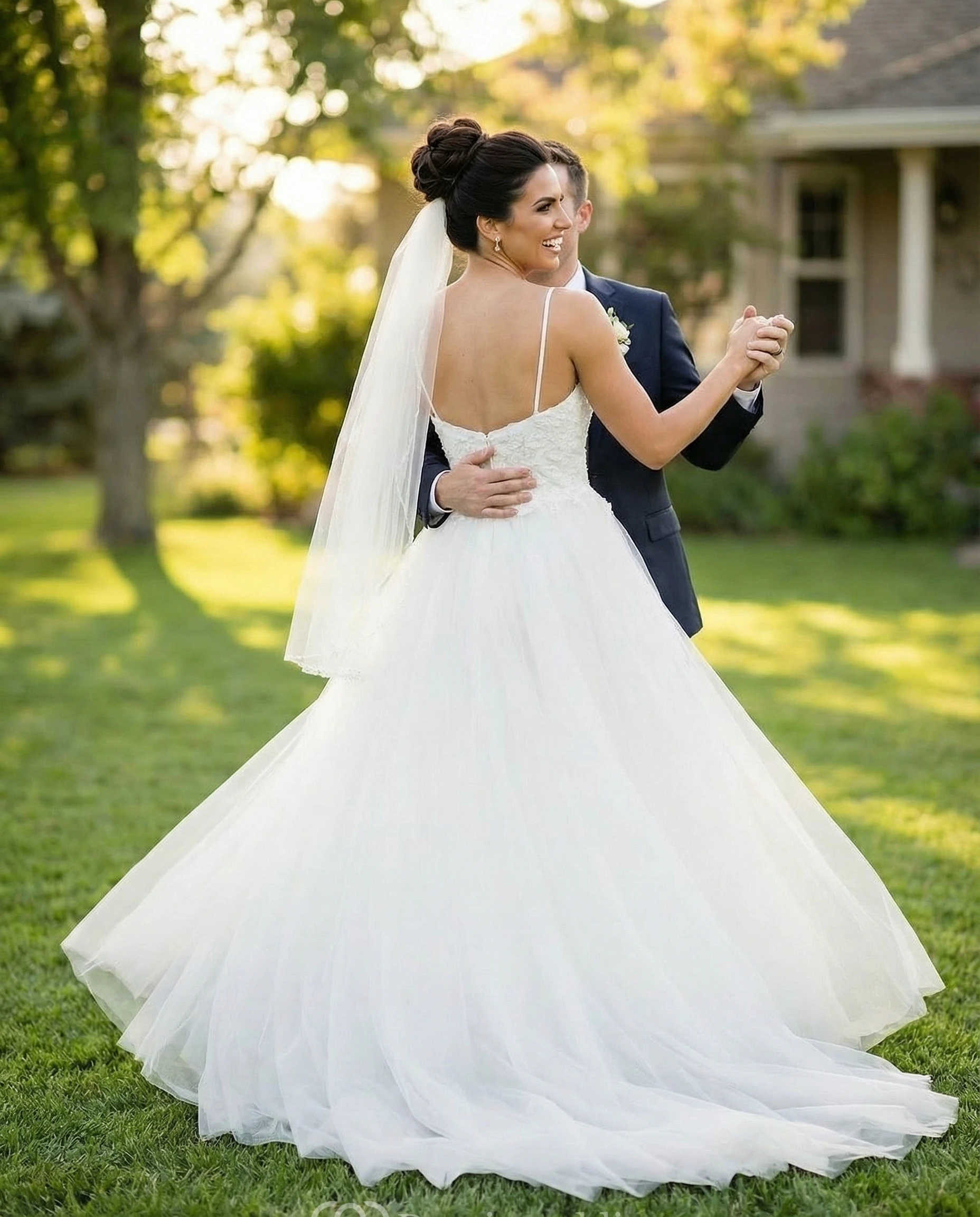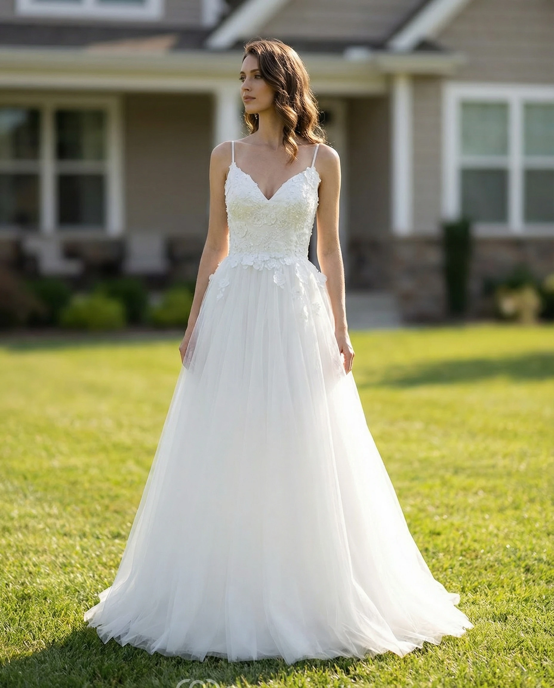 Deep V-Neck Open Back Tulle Wedding Dress