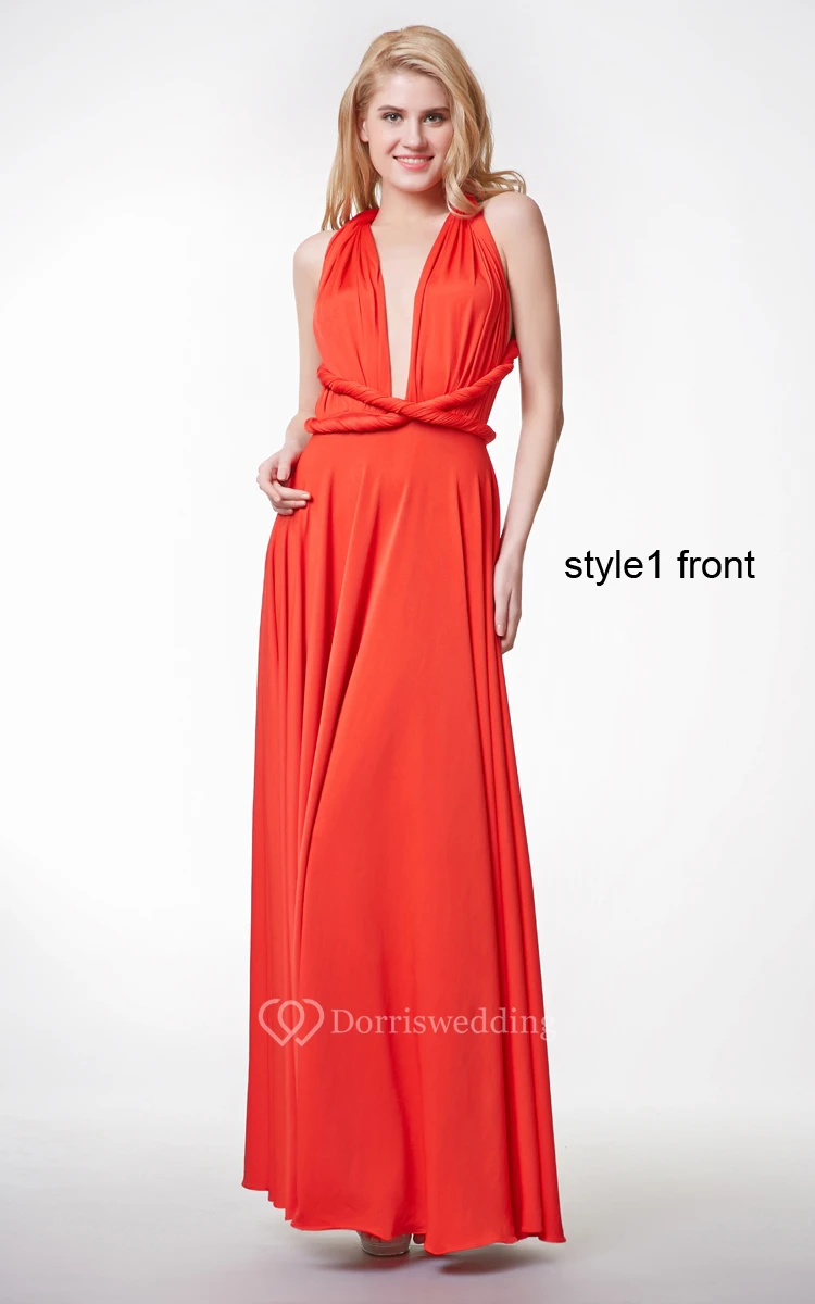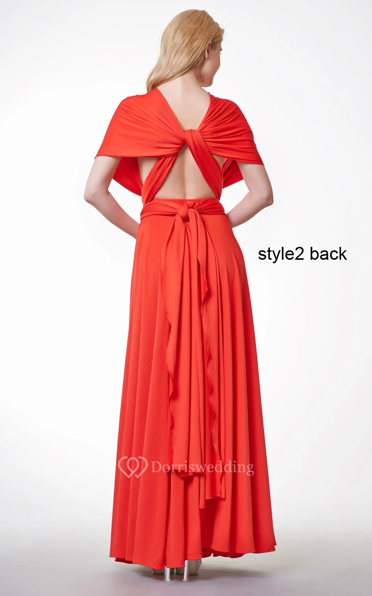 Deep V Neck Ruched Long Jersey Dress With Changeable Criss Cross Straps