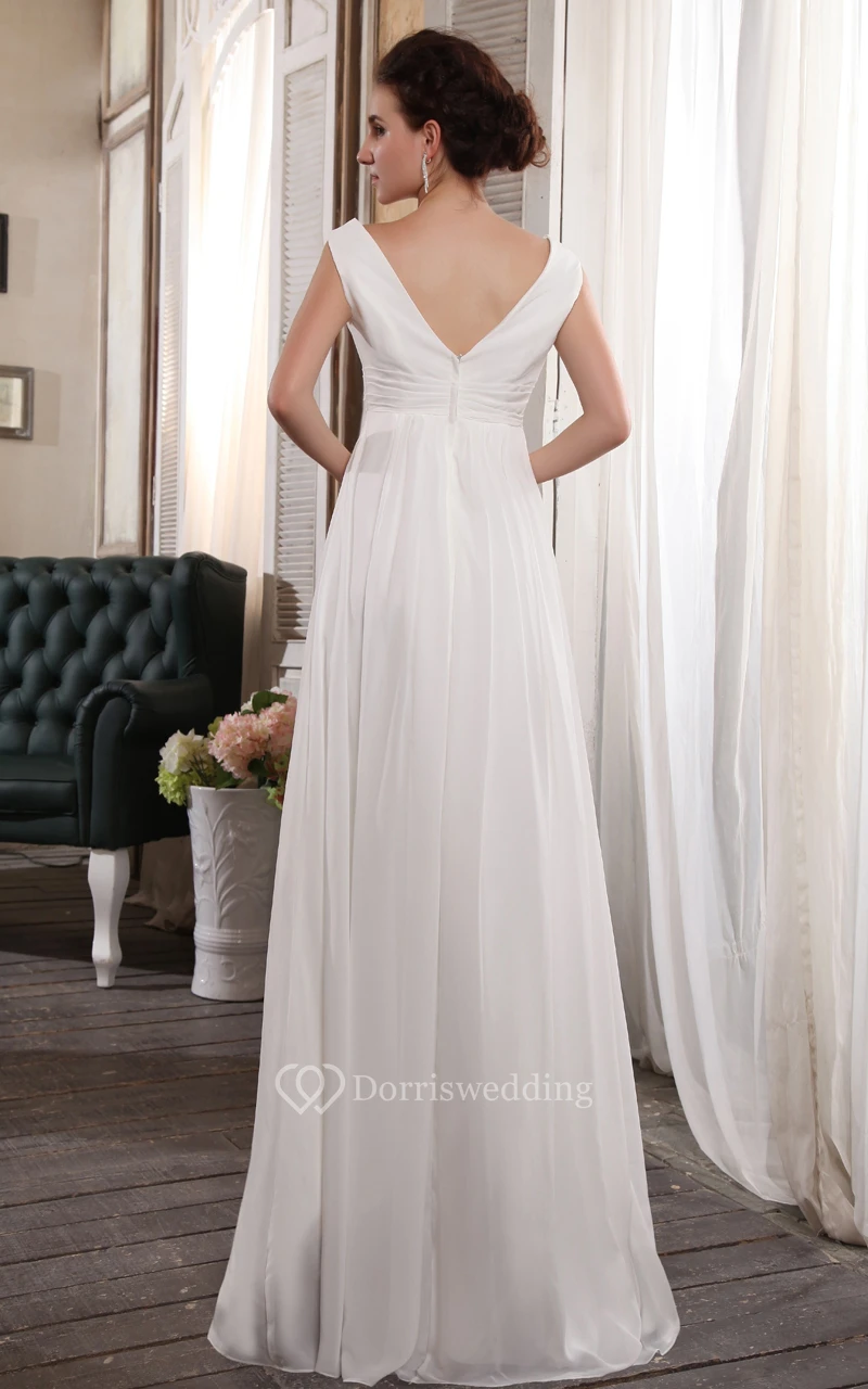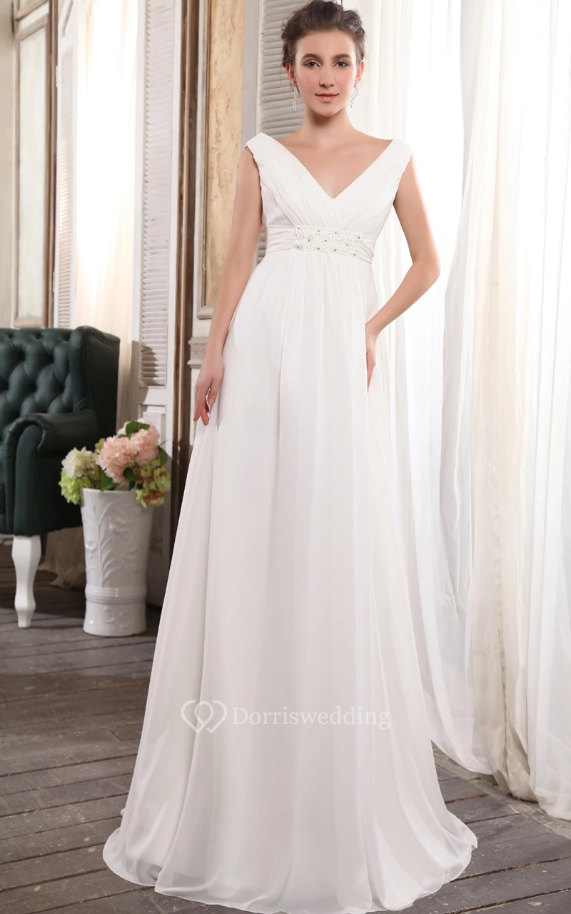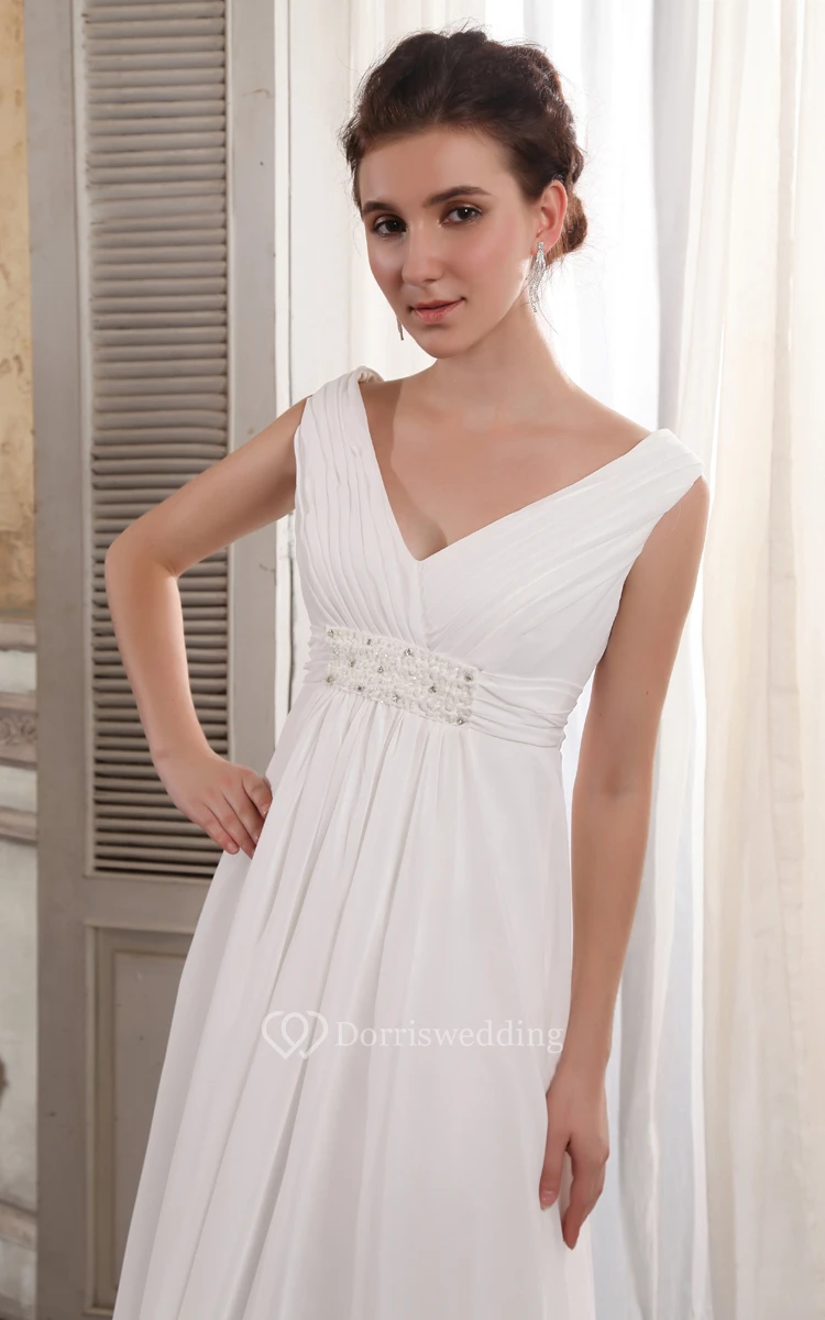 Deep V-Neck Strapless Empire Chiffon Dress With Beading