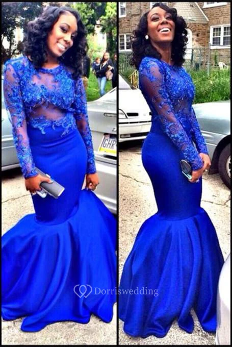 Delicate Appliques Royal Blue Prom Dress Mermaid Sweep Train