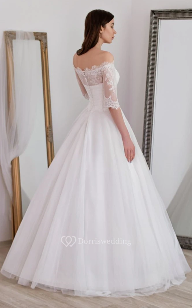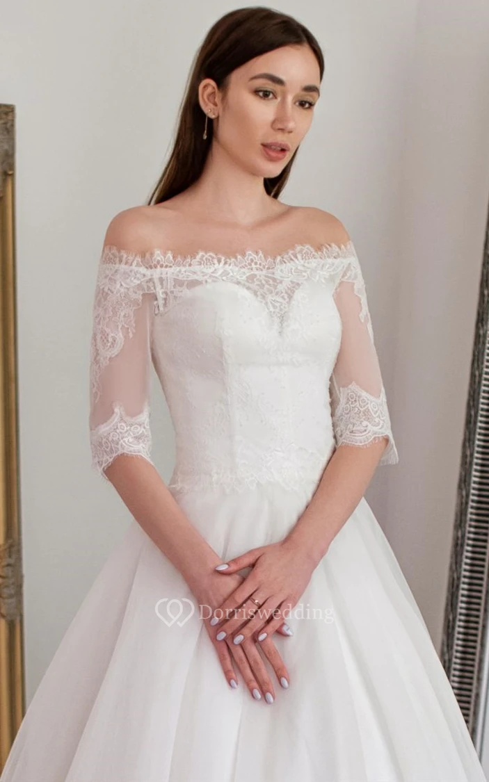 Delicate Ball Gown Off-the-shoulder Lace Wedding Dress