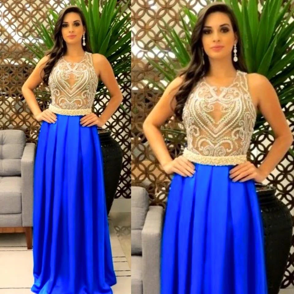 Delicate Beadings Pearls A-line Evening Dress Sleeveless Floor-length