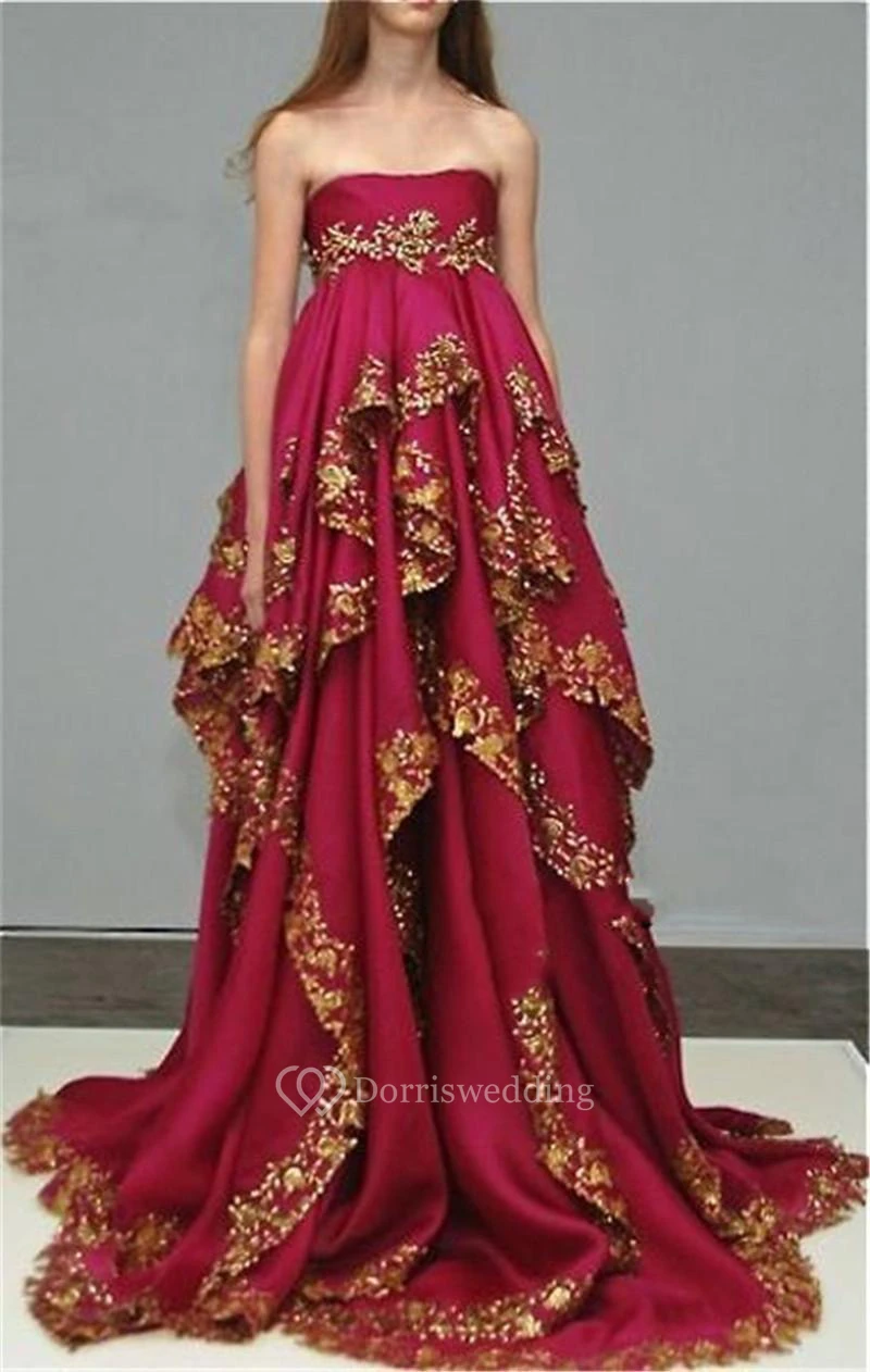 Delicate Burgundy Lace Appliques Evening Dress Ruffles Strapless