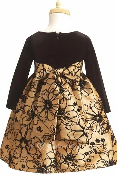 Long-Sleeve Tiered Taffeta Flower Girl Dress