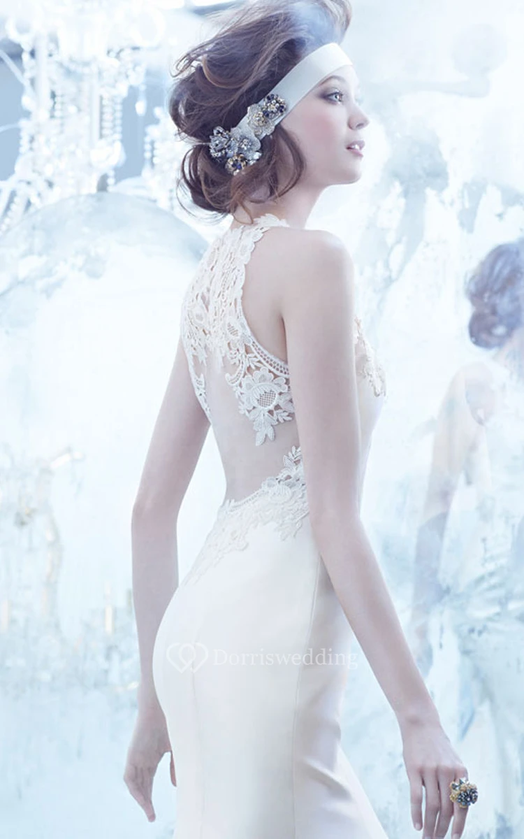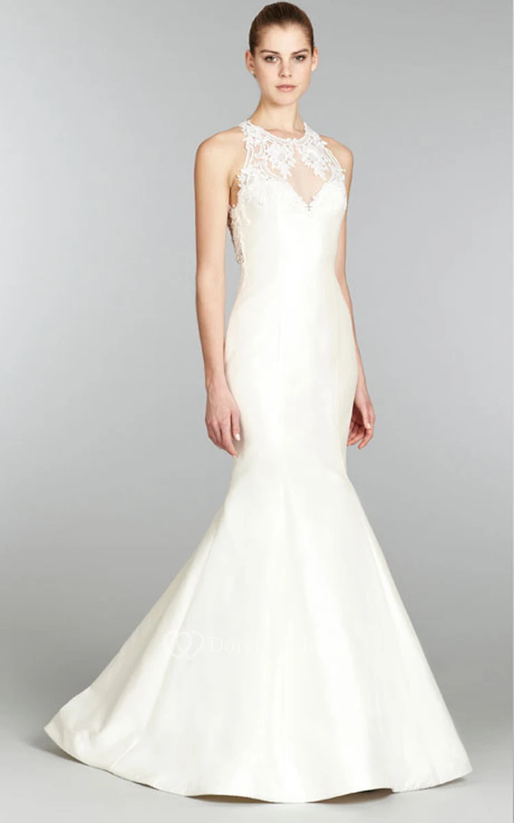 Delicate Illusion Jewel Neck Mermaid Gown With Lace Appliques
