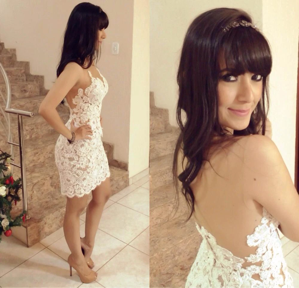 Delicate Lace Appliques Short Cocktail Dress Pencil Sleeveless