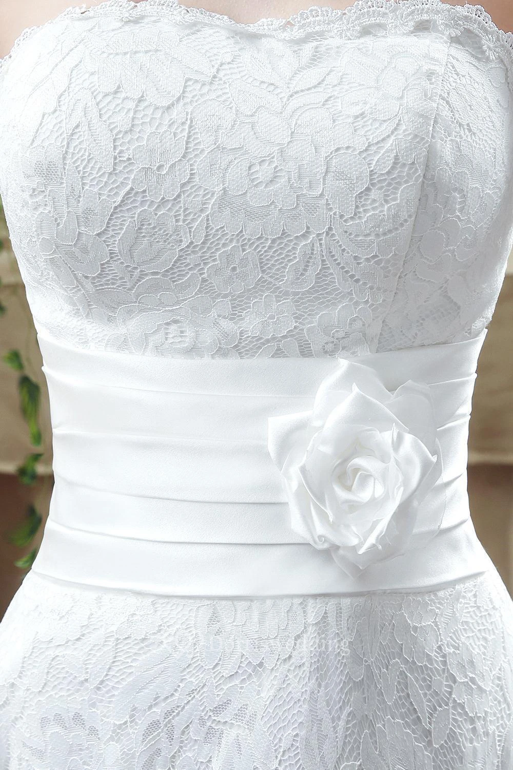 Delicate Lace Flower Strapless Tea Length Wedding Dress A-line Sleeveless Lace-up
