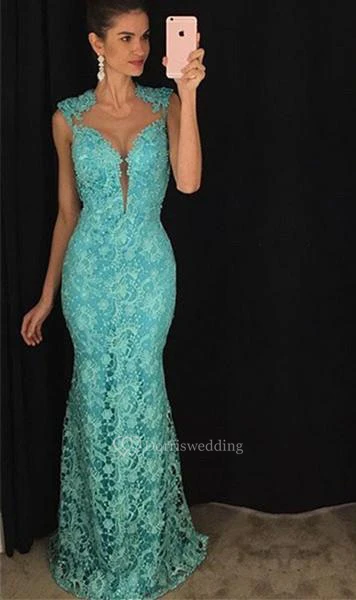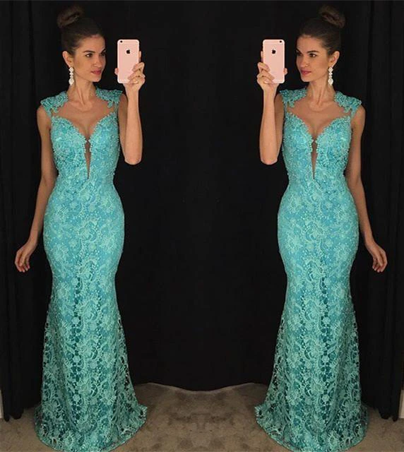 Delicate Lace Mermaid Prom Dress Sleeveless Sweep Train