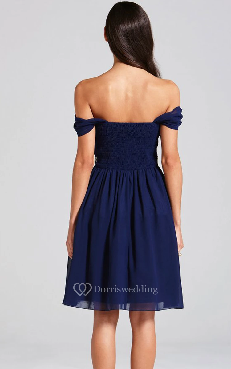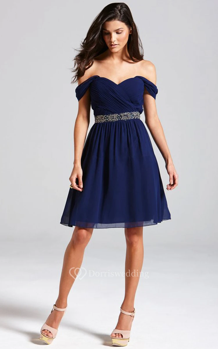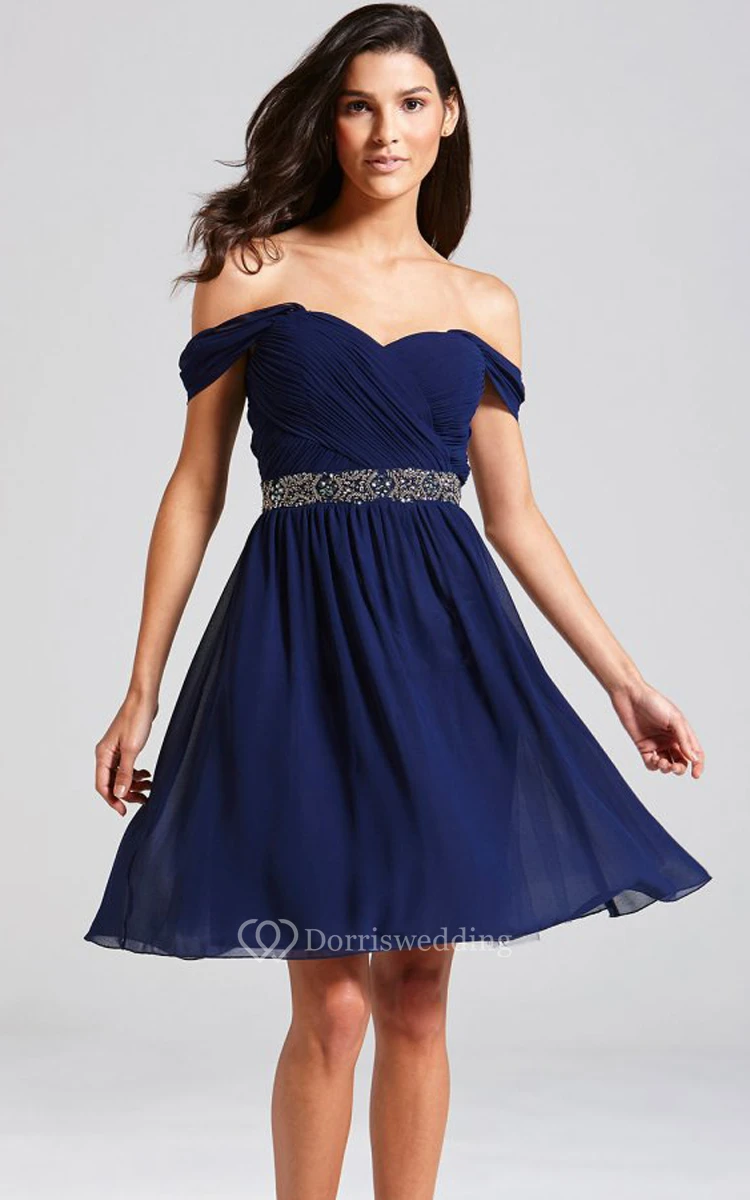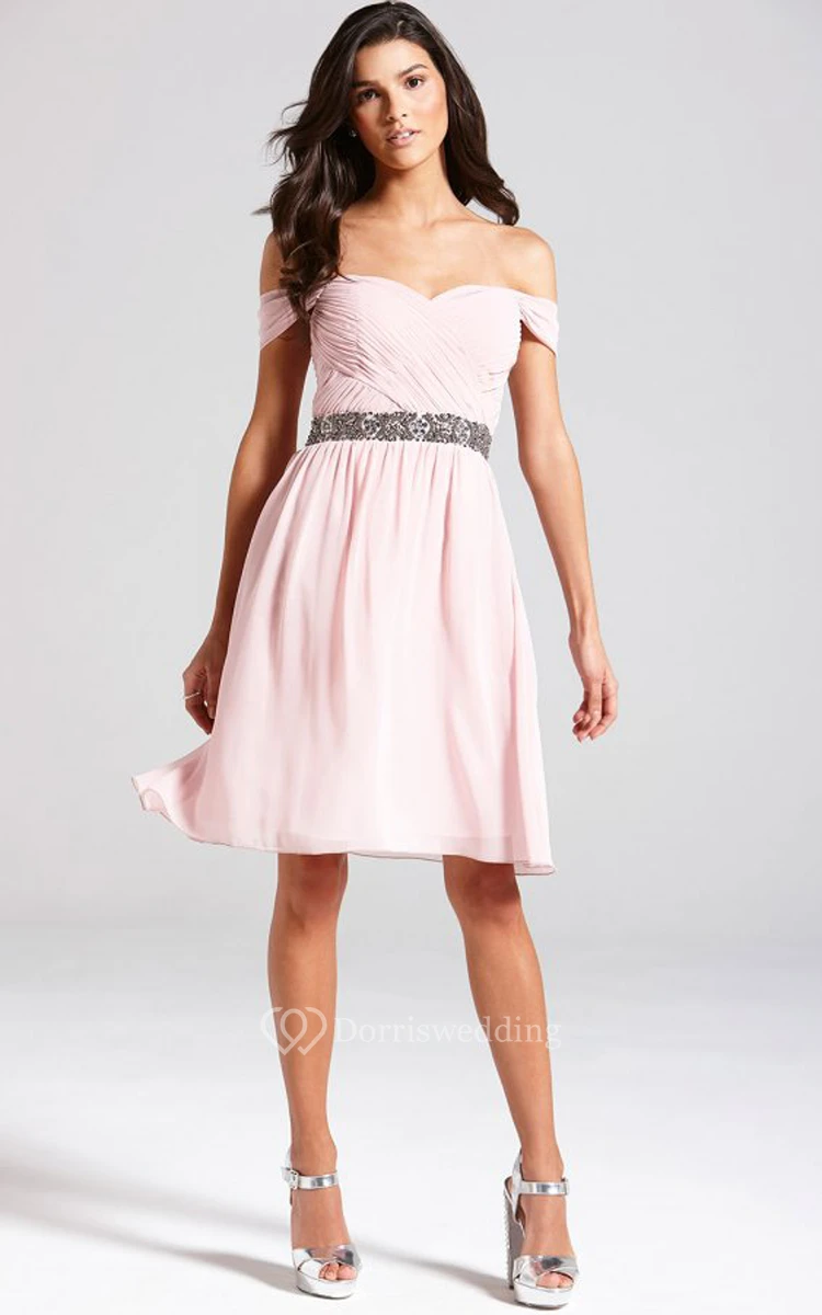 Delicate Off-The-Shoulder A-Line Dress With Beaded Sash