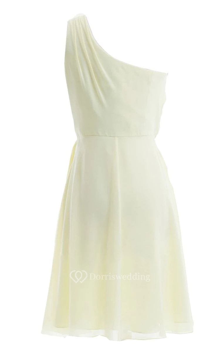 Delicate One-shoulder Short Dress With Flower