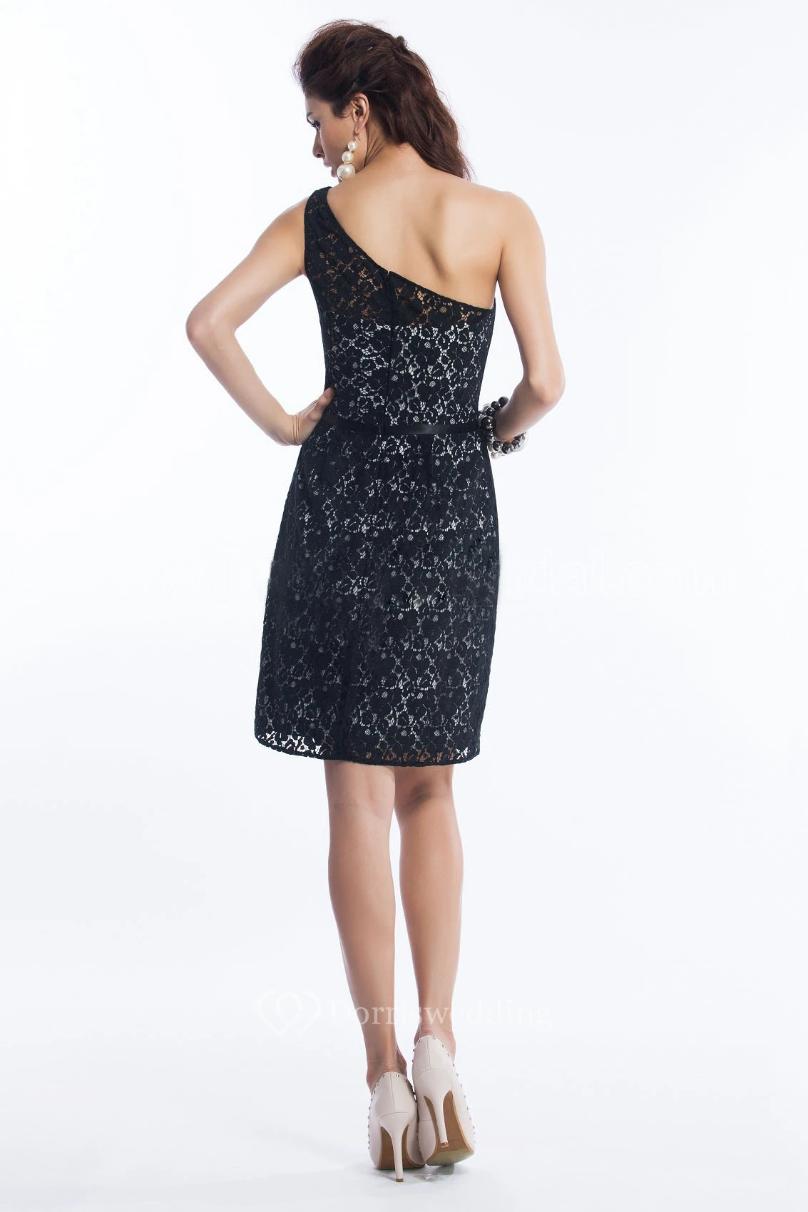 Delicate One-Shoulder Short Lace Sheath Bridesmaid Dress