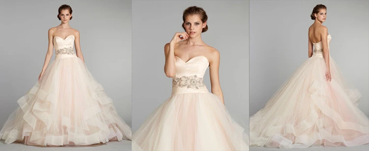 Delicate Satin Bodice Tulle Ball Gown With Floral Jewel Embellished Waist