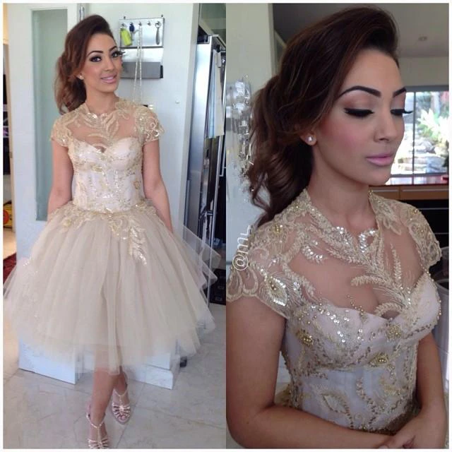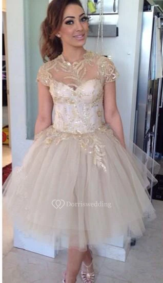 Delicate Sequins Short Princess Cocktail Dress Cap Sleeve