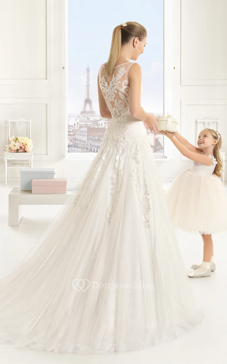Delicate Sleevless Bateau-Neck Dress With Illusion Back