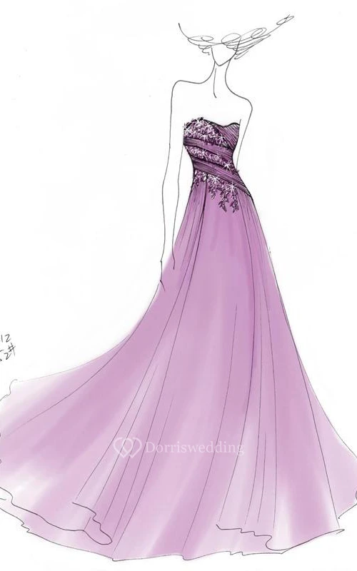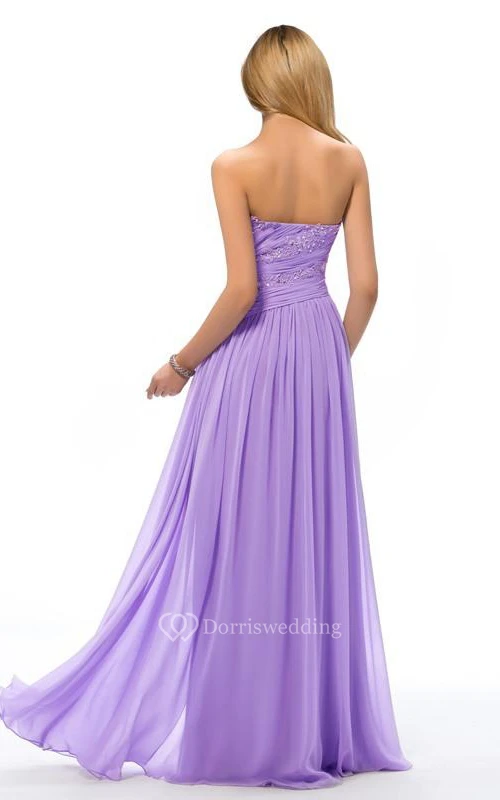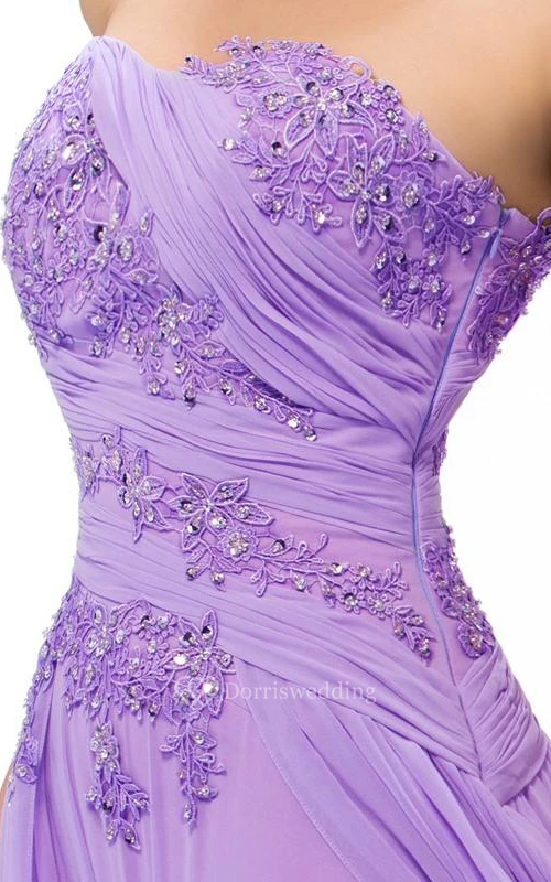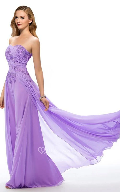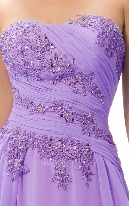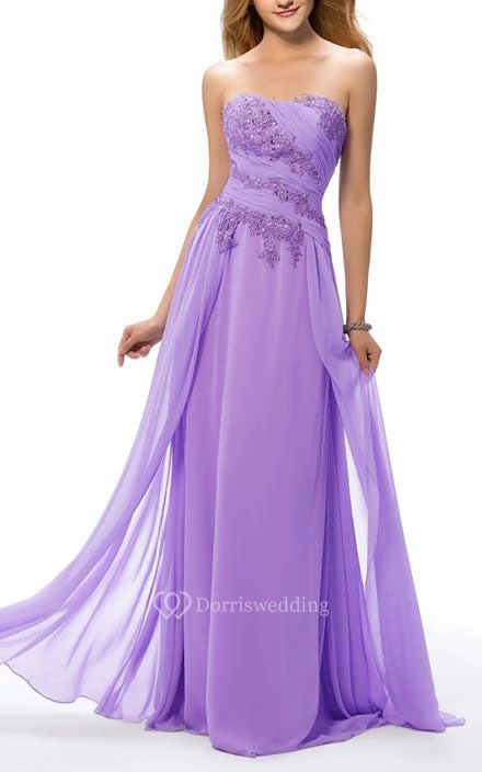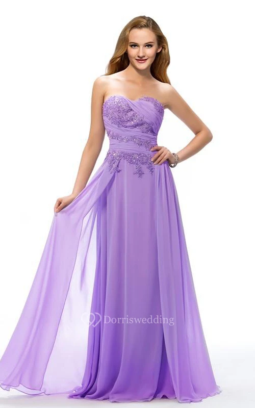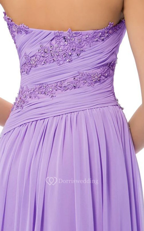 Delicate Sweetheart Appliques Ruched Full Length Prom Dress