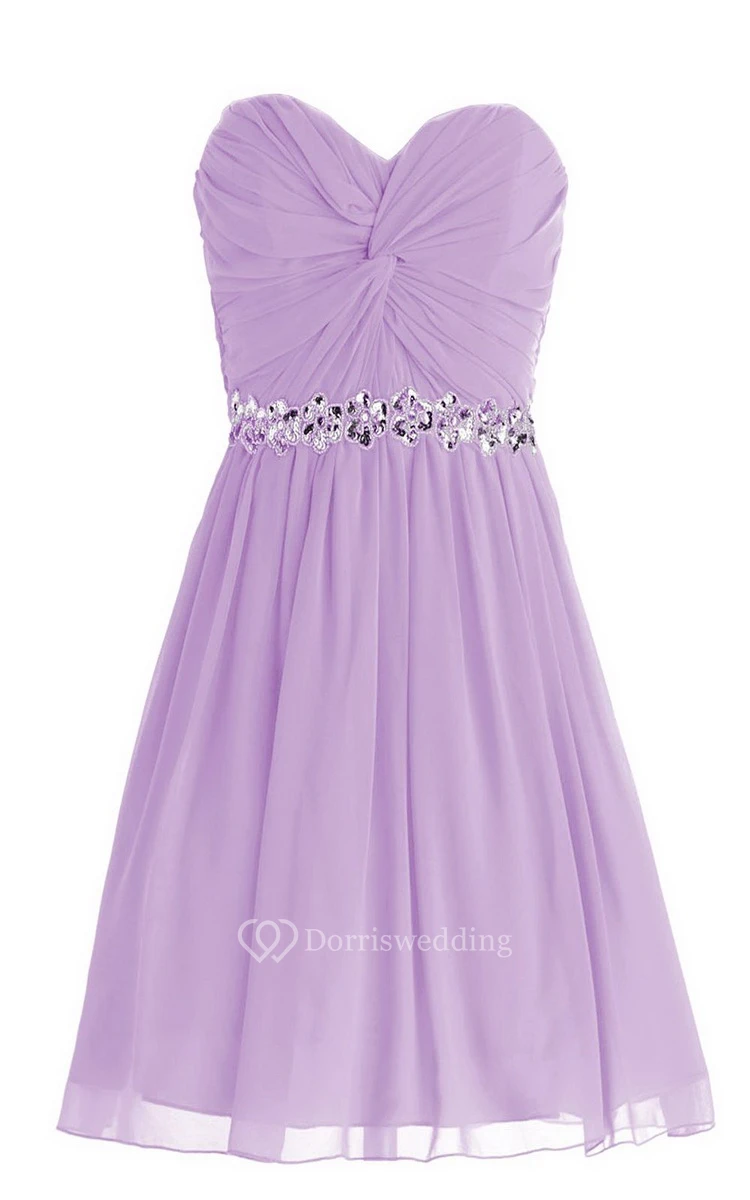 Delicate Sweetheart Drapped Short Dress With Sequined Band