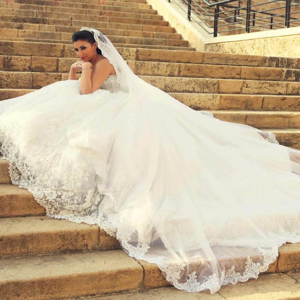 Delicate Sweetheart Lace Tulle Wedding Dress Ball Gown Beadings
