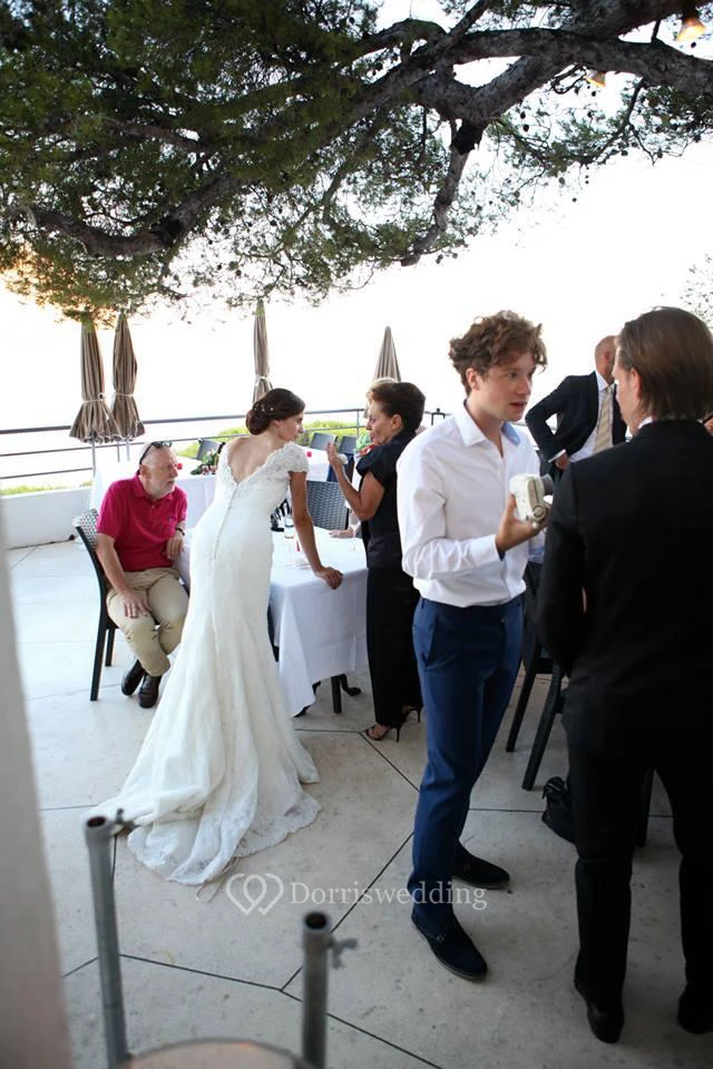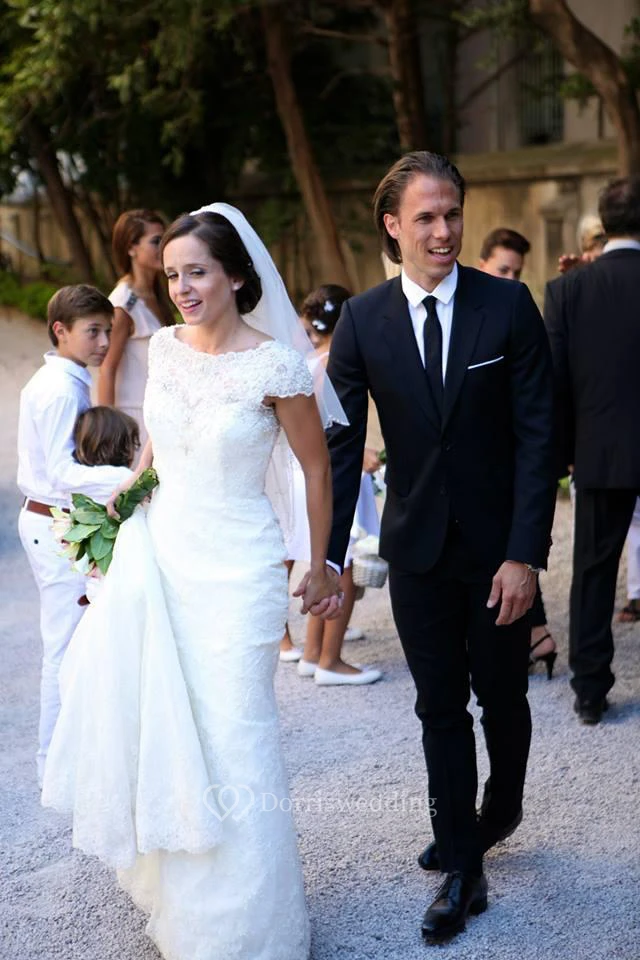 Delicate Tulle Lace Mermaid Wedding Dress Beadings Sweep Train