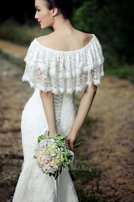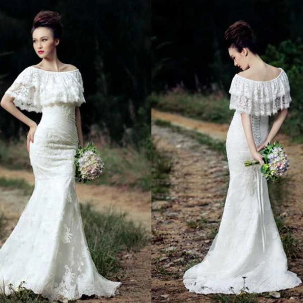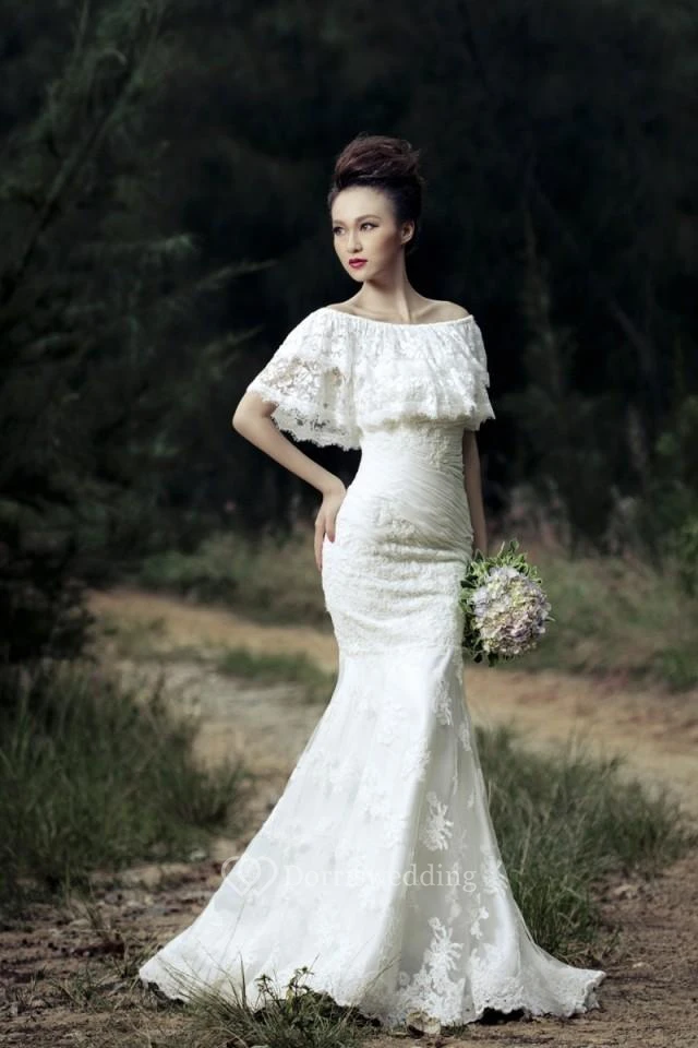 Designer Lace Mermaid Wedding Dress Off-the-Shoulder Lace-Up Floor Length