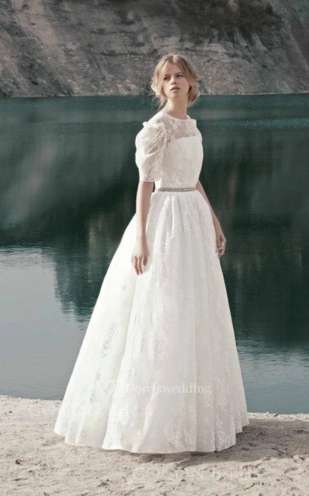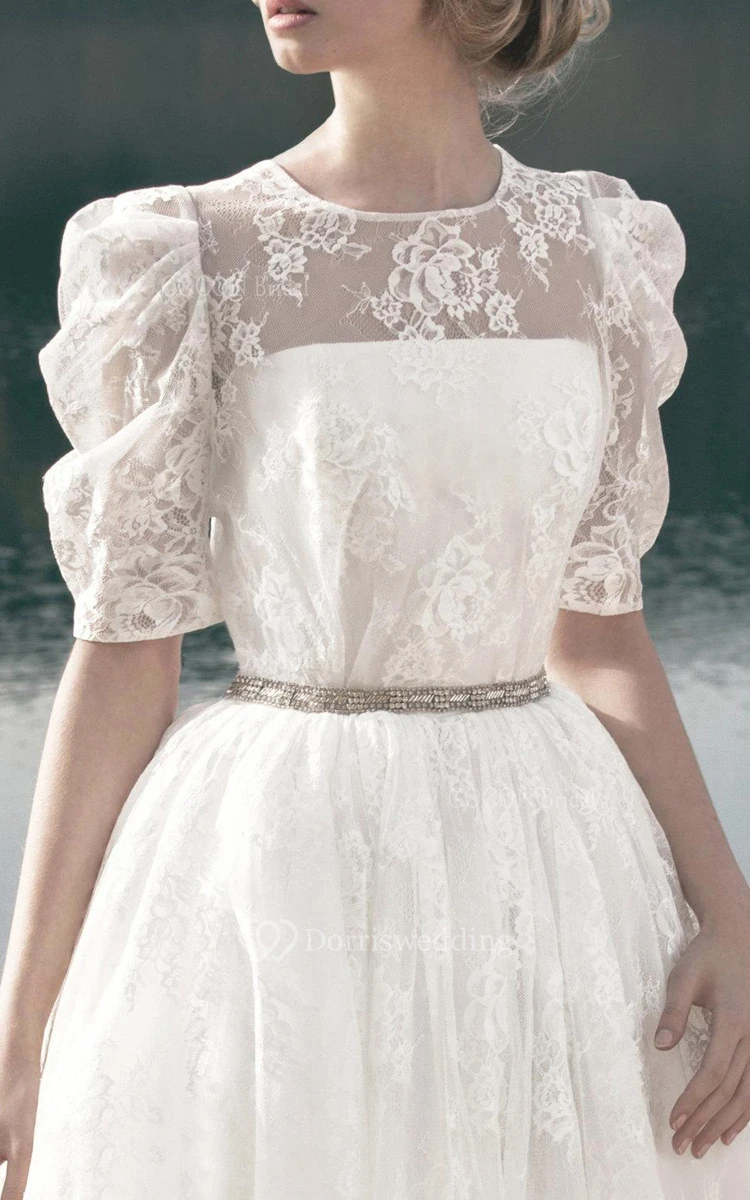 Vintage Style Romantic Gown Floral Lace Long Sleeve Bridesmaid Dress