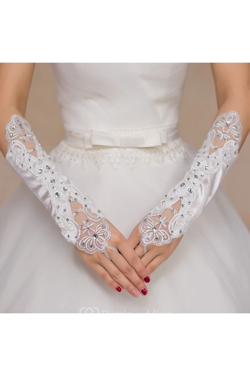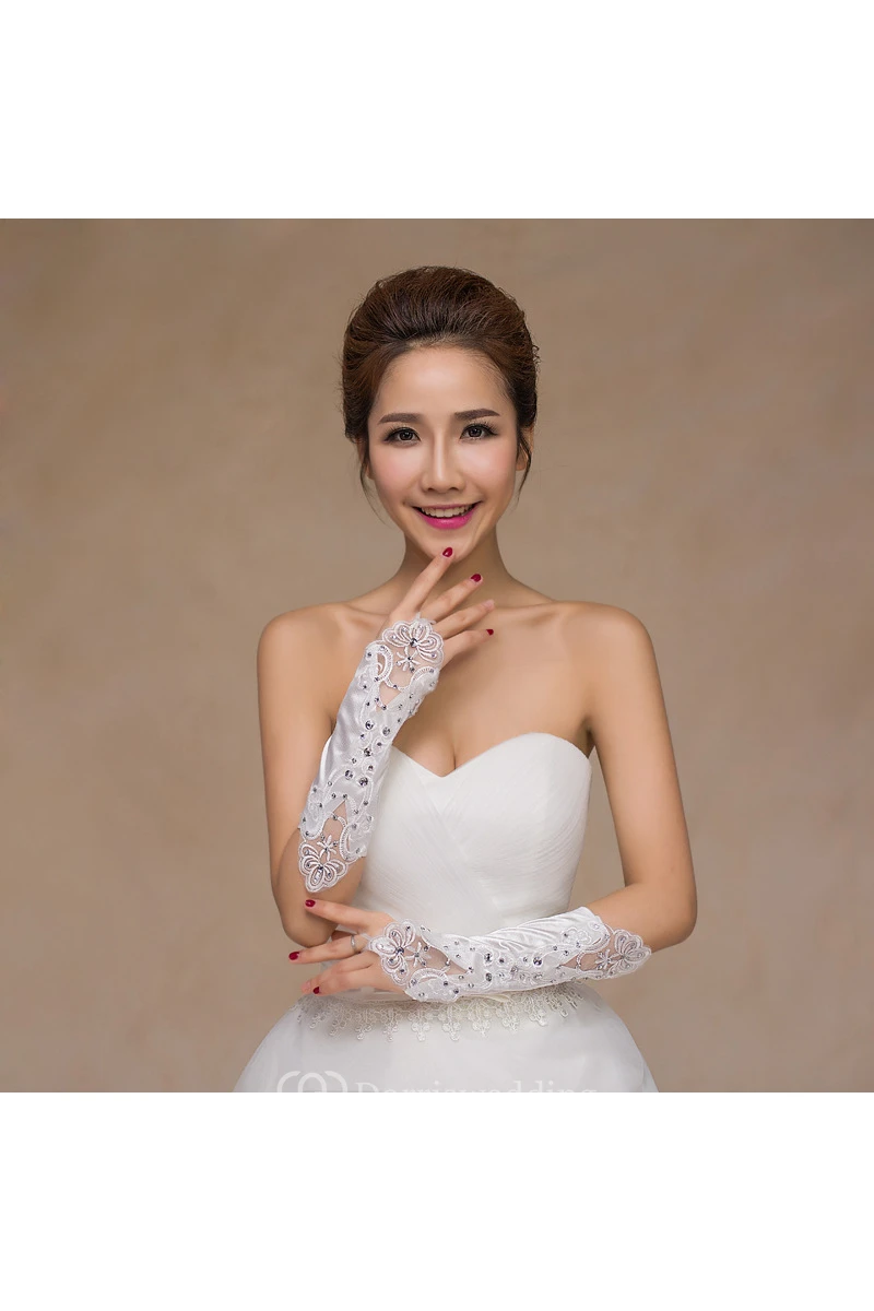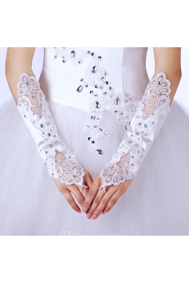 Diamond Elastic Satin Hollow Mesh Bead Embroidered Gloves