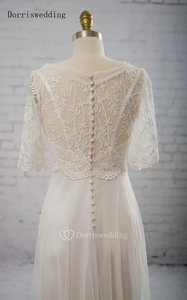 Dorriswedding V-Shaped Neckline Cape Tulle Dress With Appliques