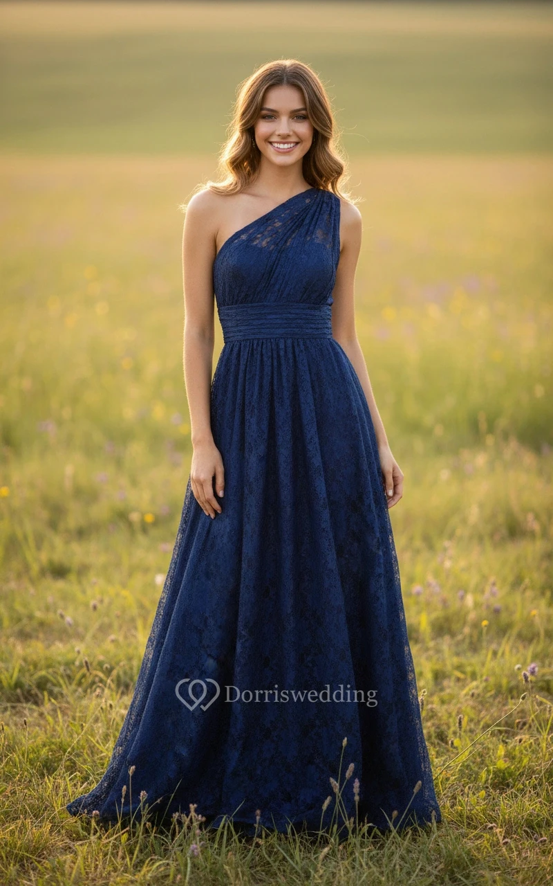 Dramatic One-Shoulder Lace Evening Dress