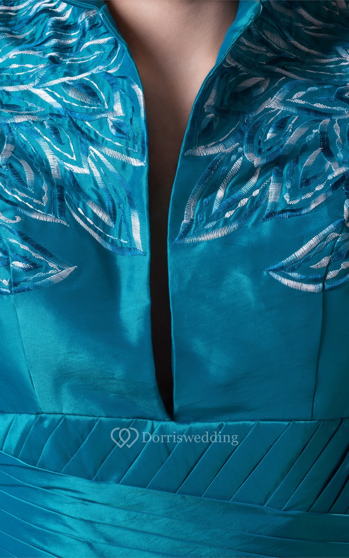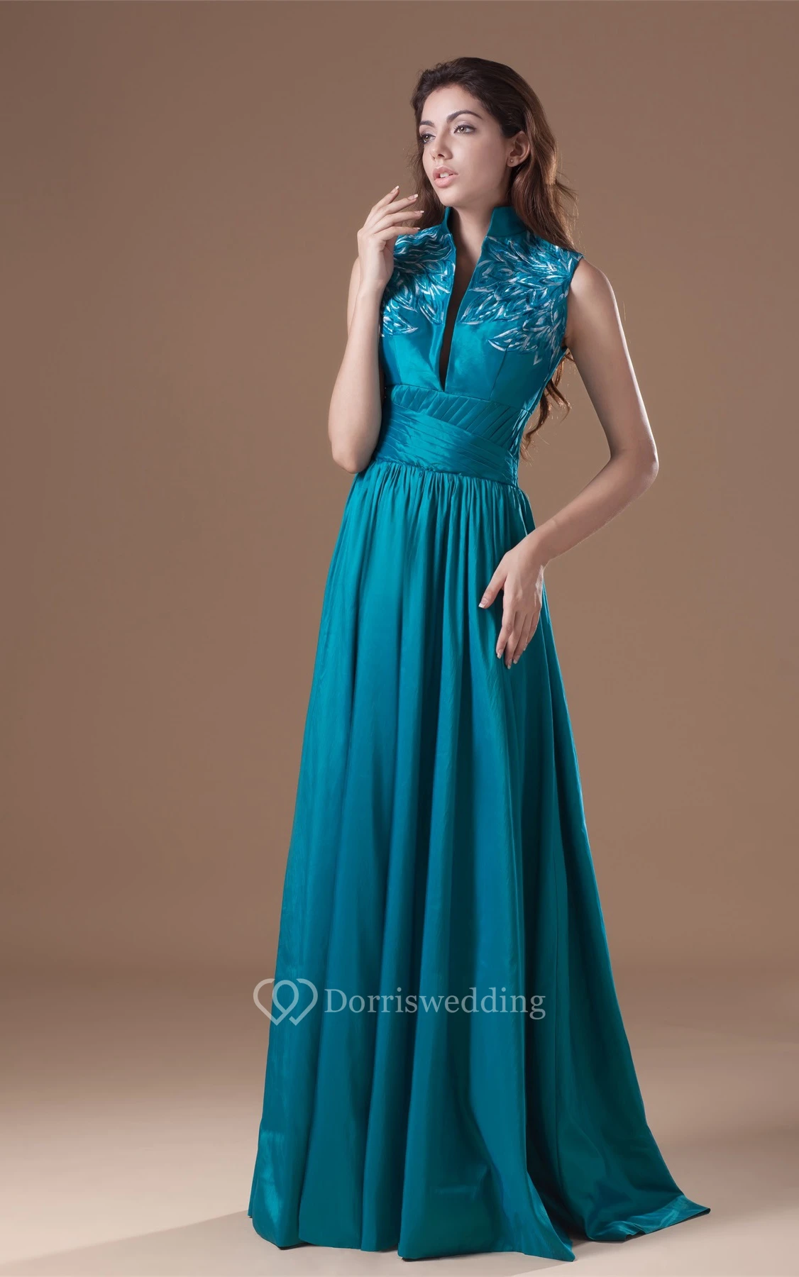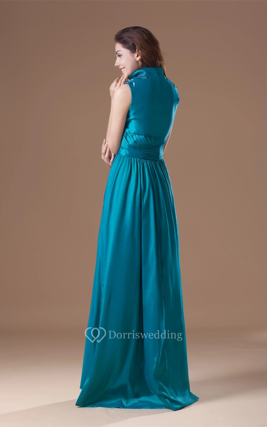 Dramatic Pleated Maxi Taffeta Sleeveless High Neck Special Occasion Dresses